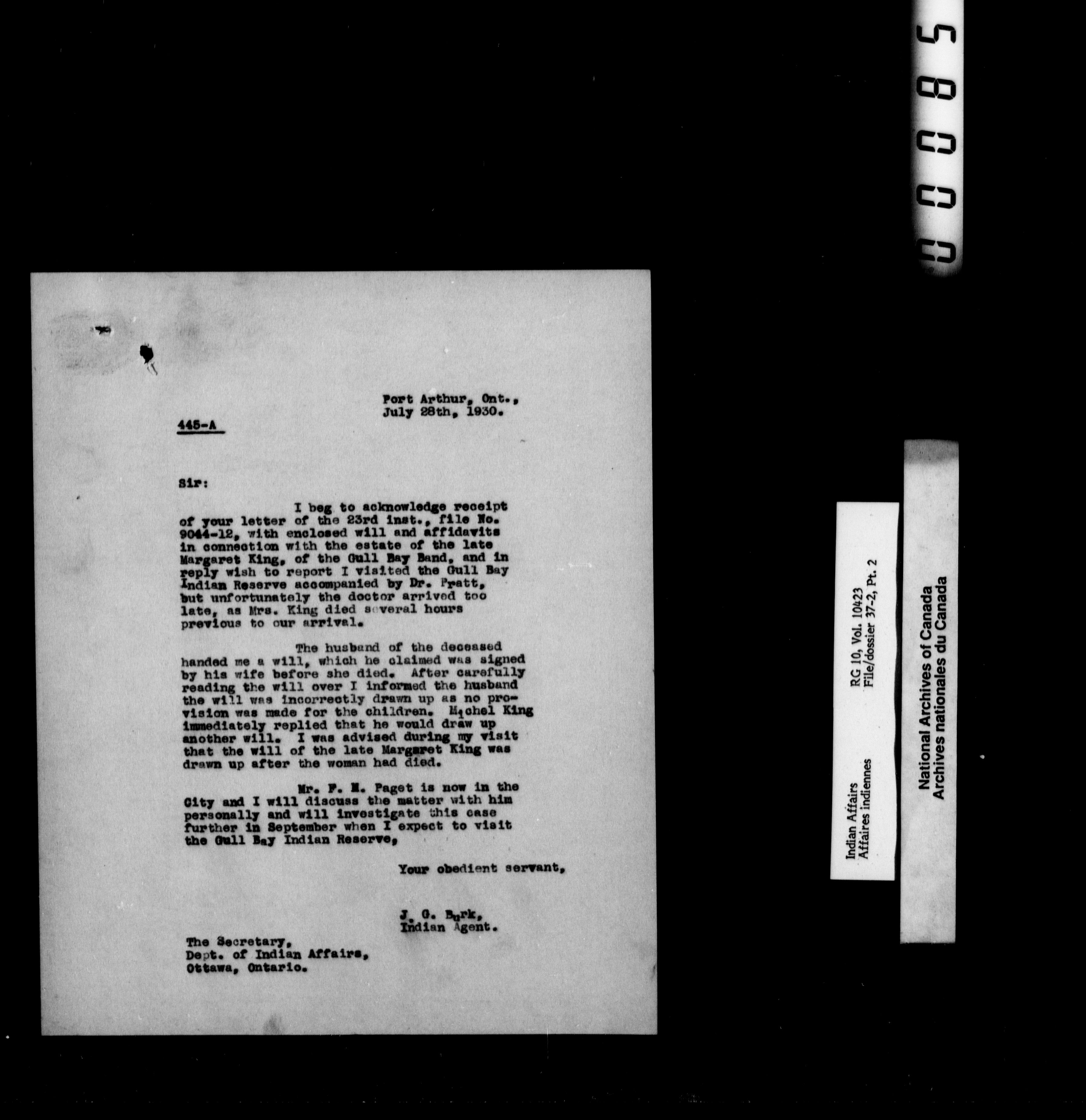 Department of Indian Affairs : Port Arthur Agency - 10076