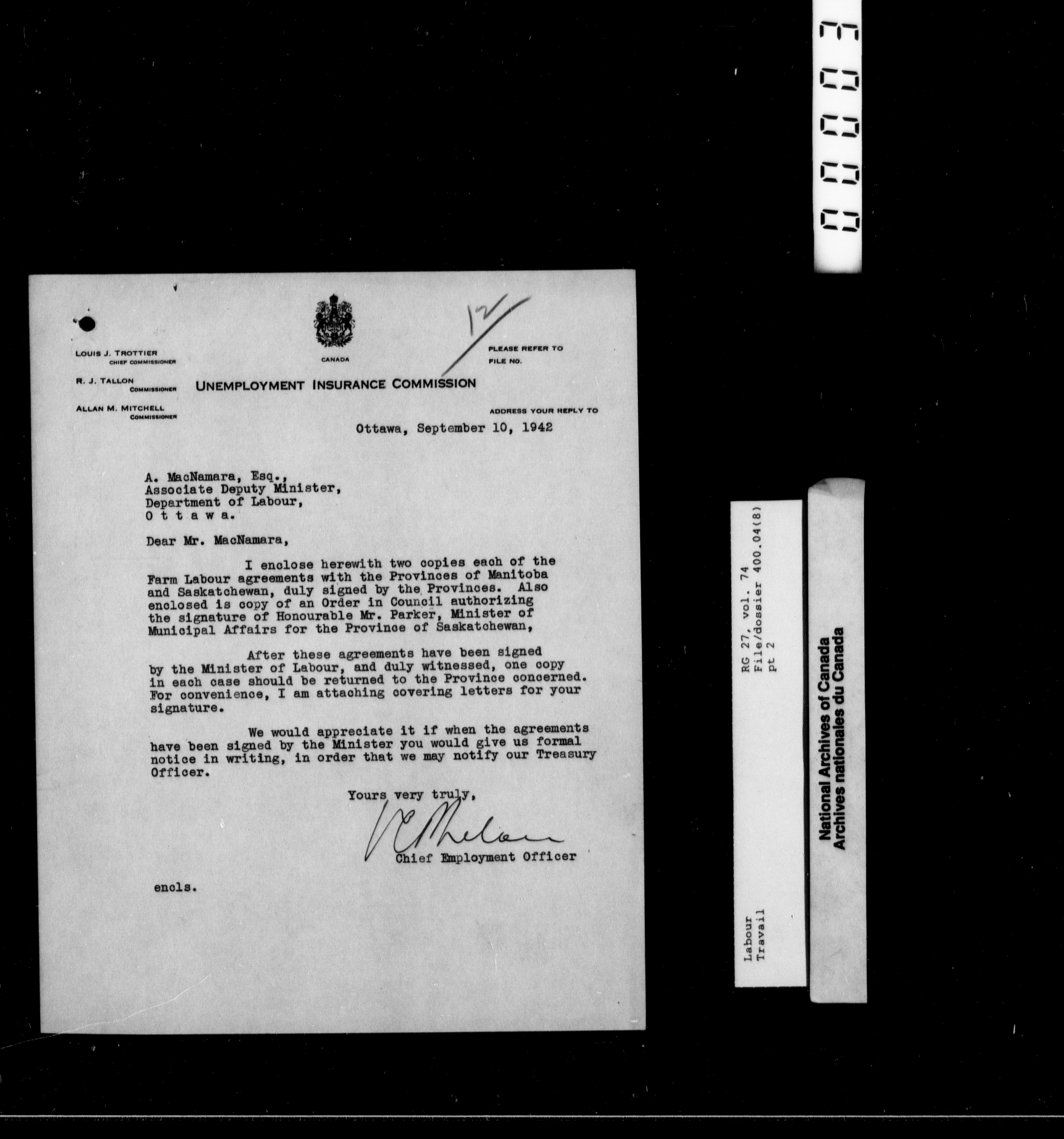 Department of Labour, Deputy Minister’s Office: Lacelle files - 10086