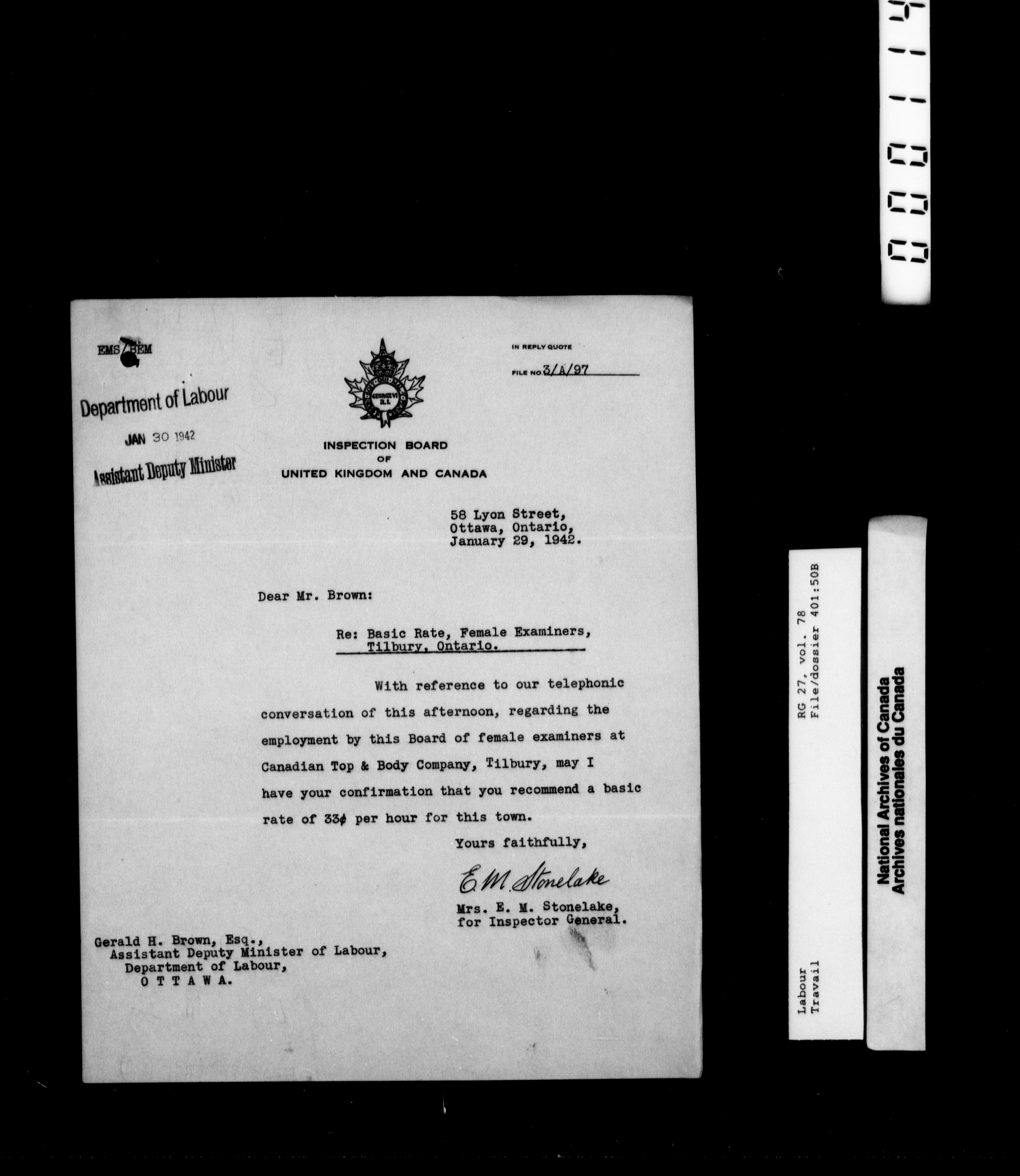 Department of Labour, Deputy Minister’s Office: Lacelle files : T-10088