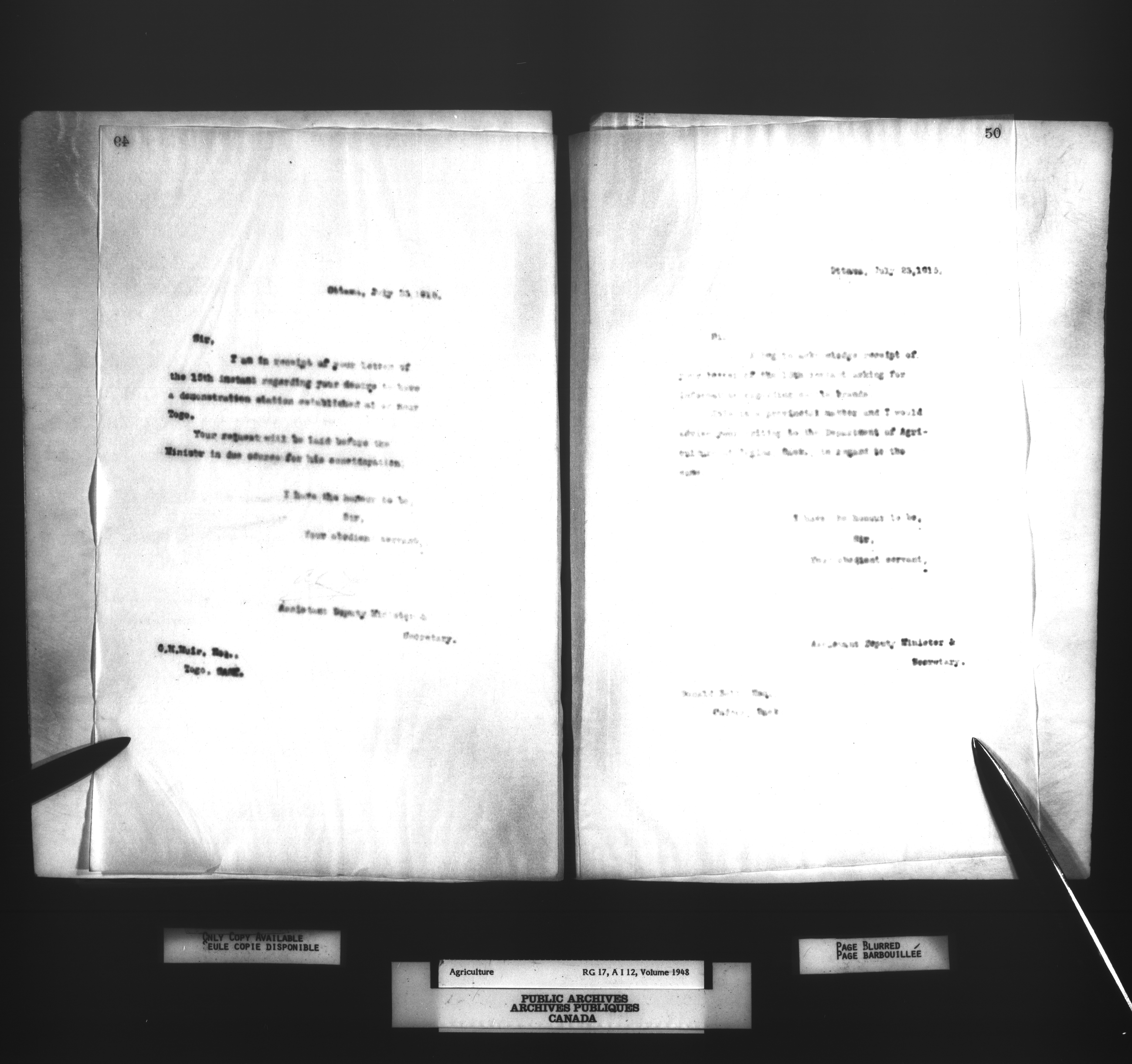 Department of Agriculture : Secretary and Assistant Deputy Minister's letterbooks, 1881-1916 - 1009