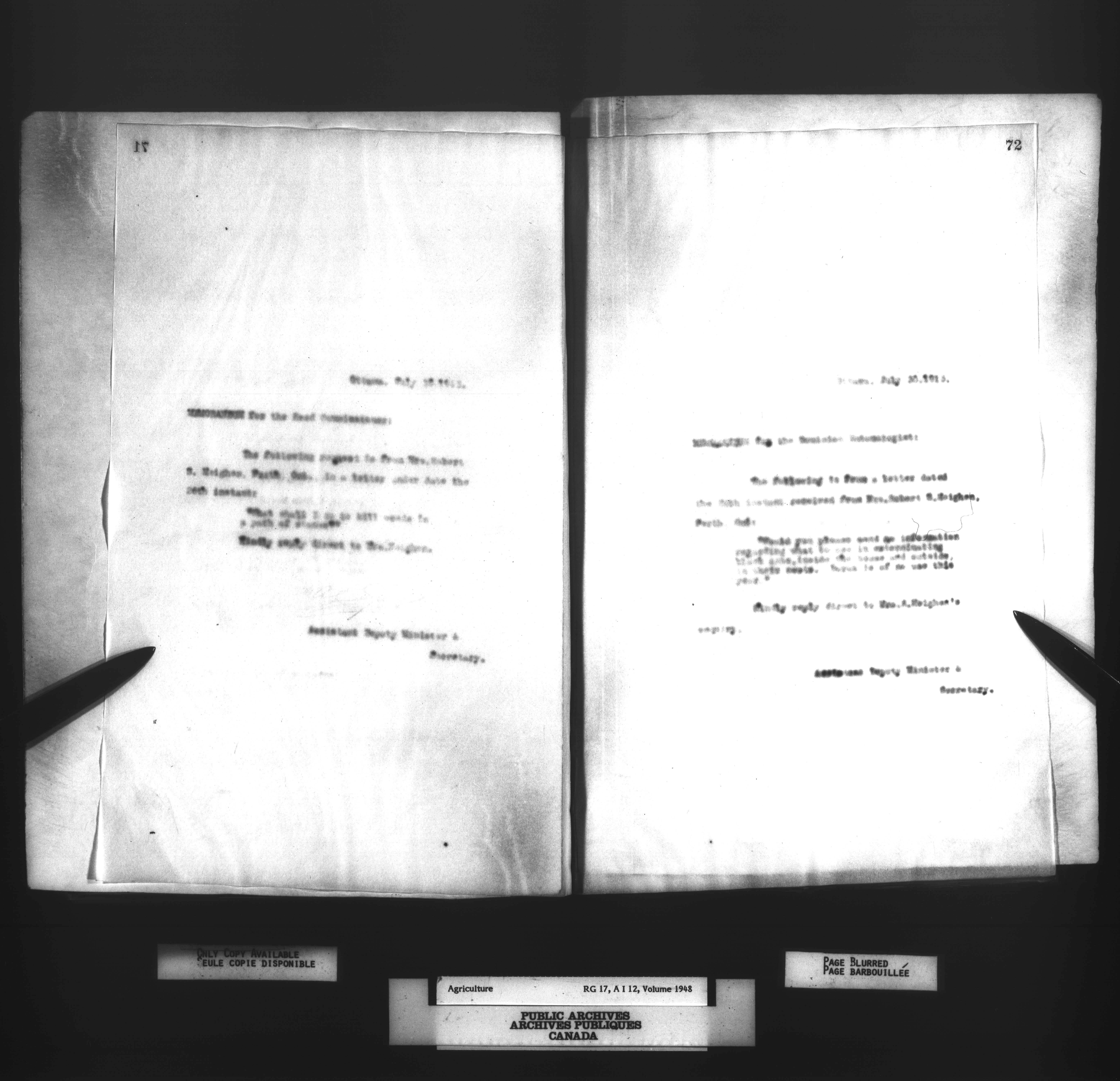 Department of Agriculture : Secretary and Assistant Deputy Minister's letterbooks, 1881-1916 - 1009