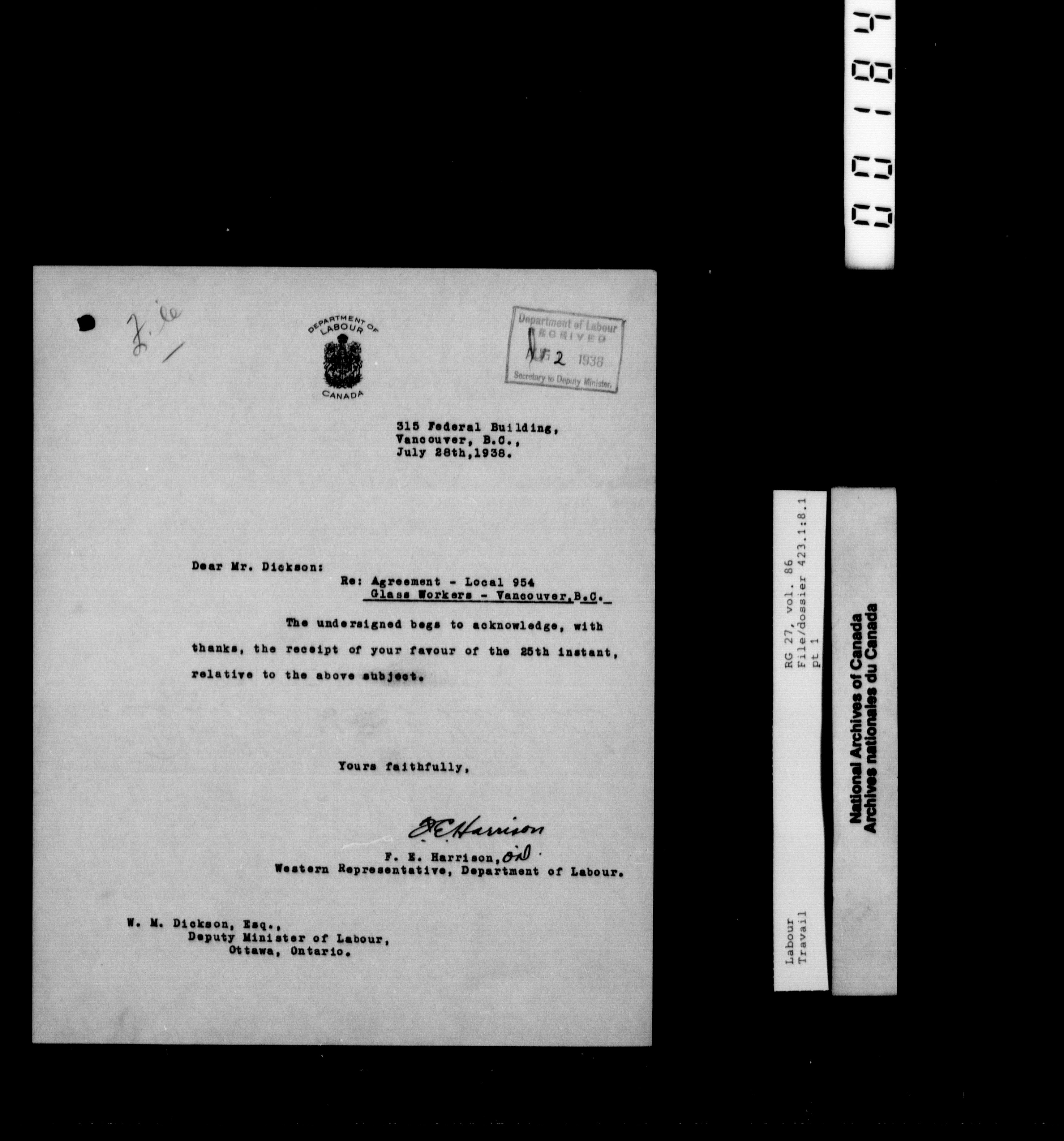 Department of Labour, Deputy Minister’s Office: Lacelle files : T-10091