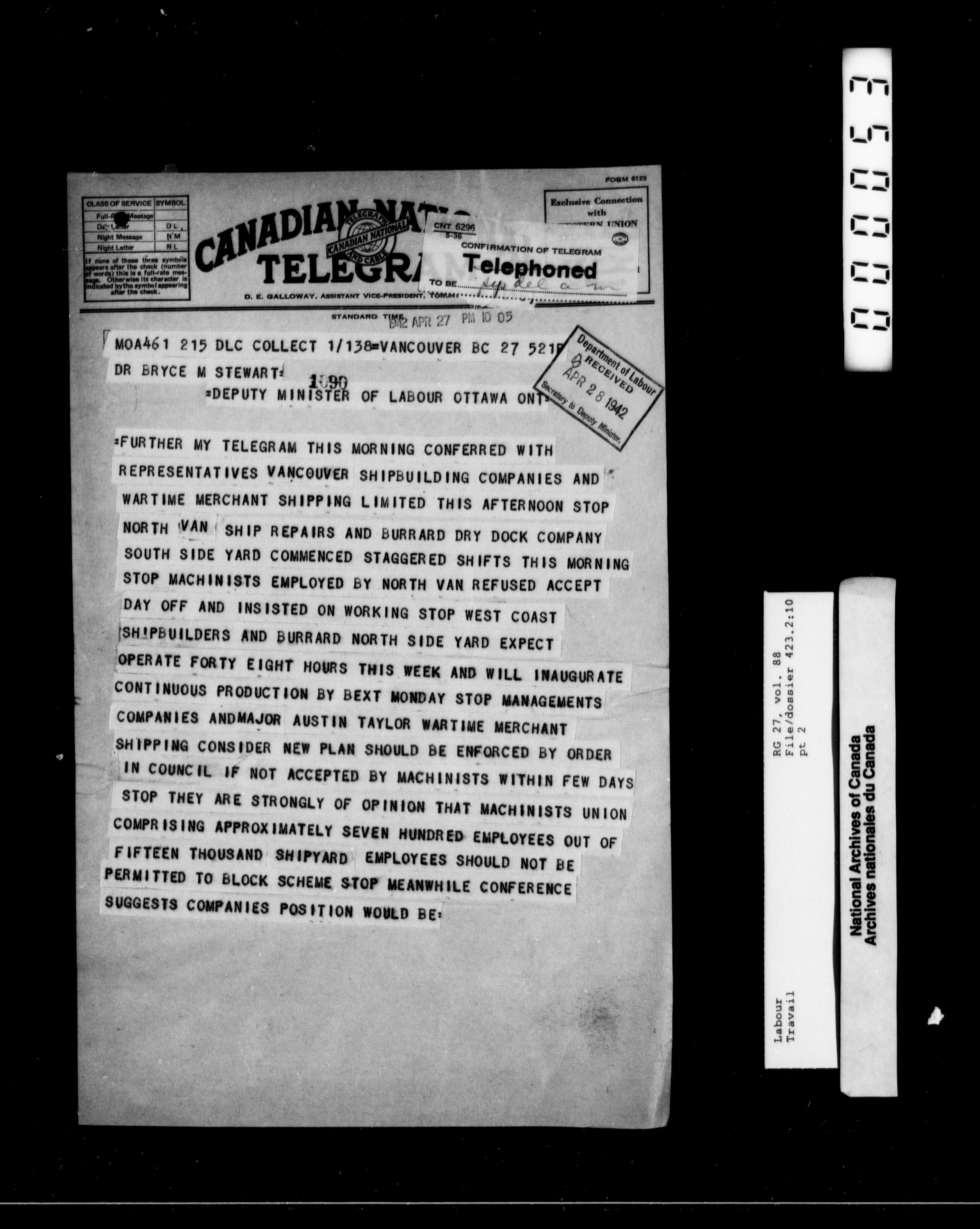Department of Labour, Deputy Minister’s Office: Lacelle files : T-10093