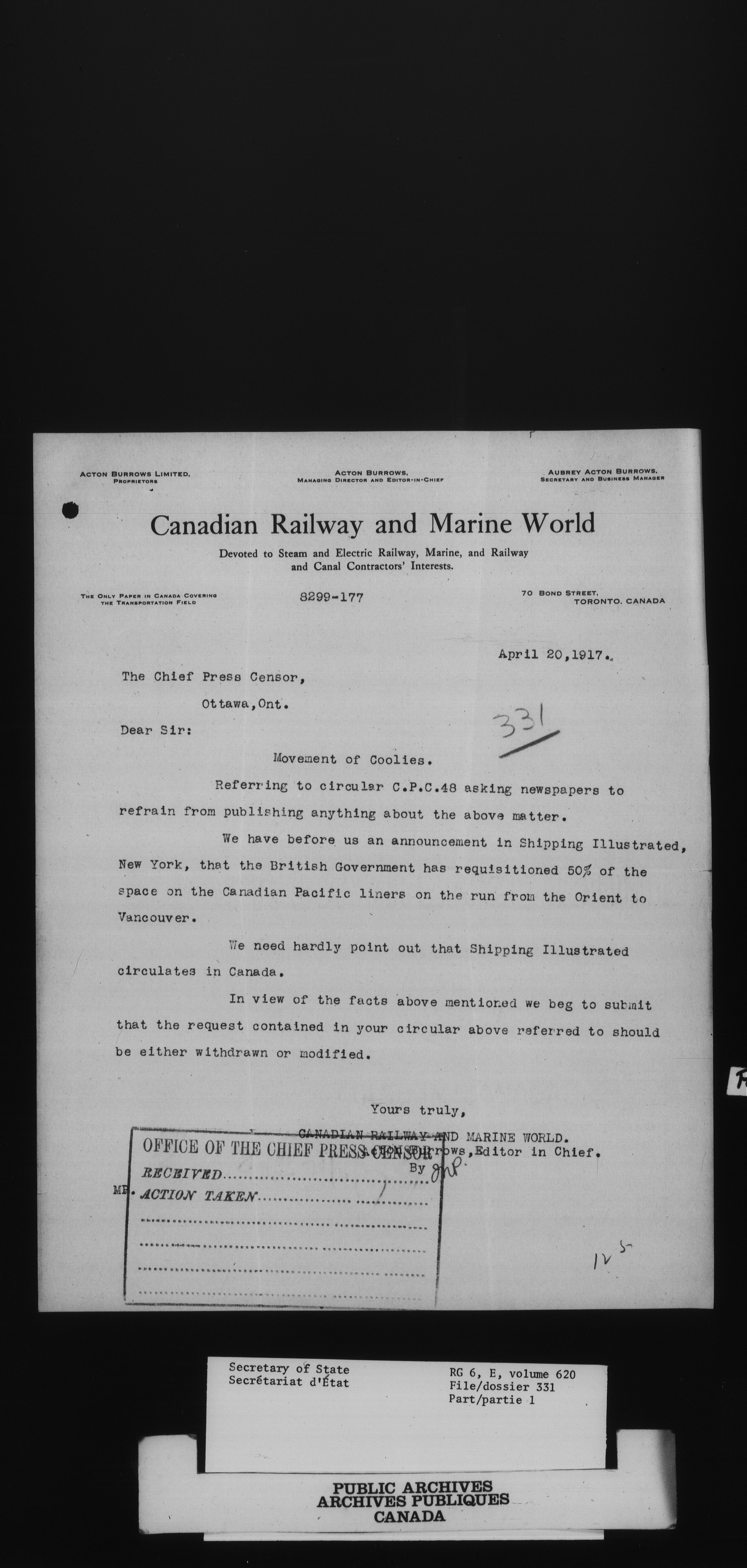 Secretary of State : Chief Press Censor, 1915-1920 - 101
