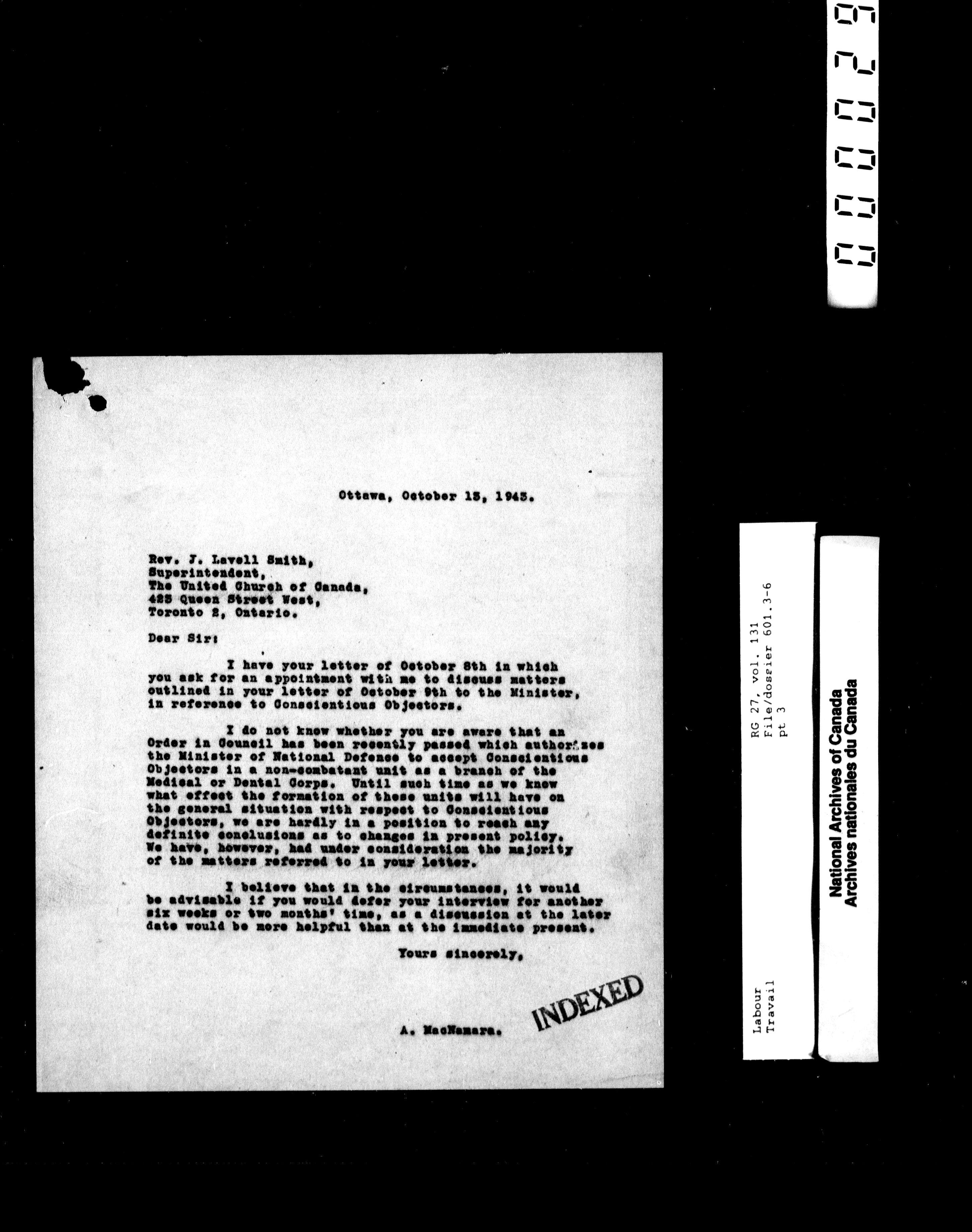 Department of Labour, Deputy Minister’s Office: Lacelle files : T-10115