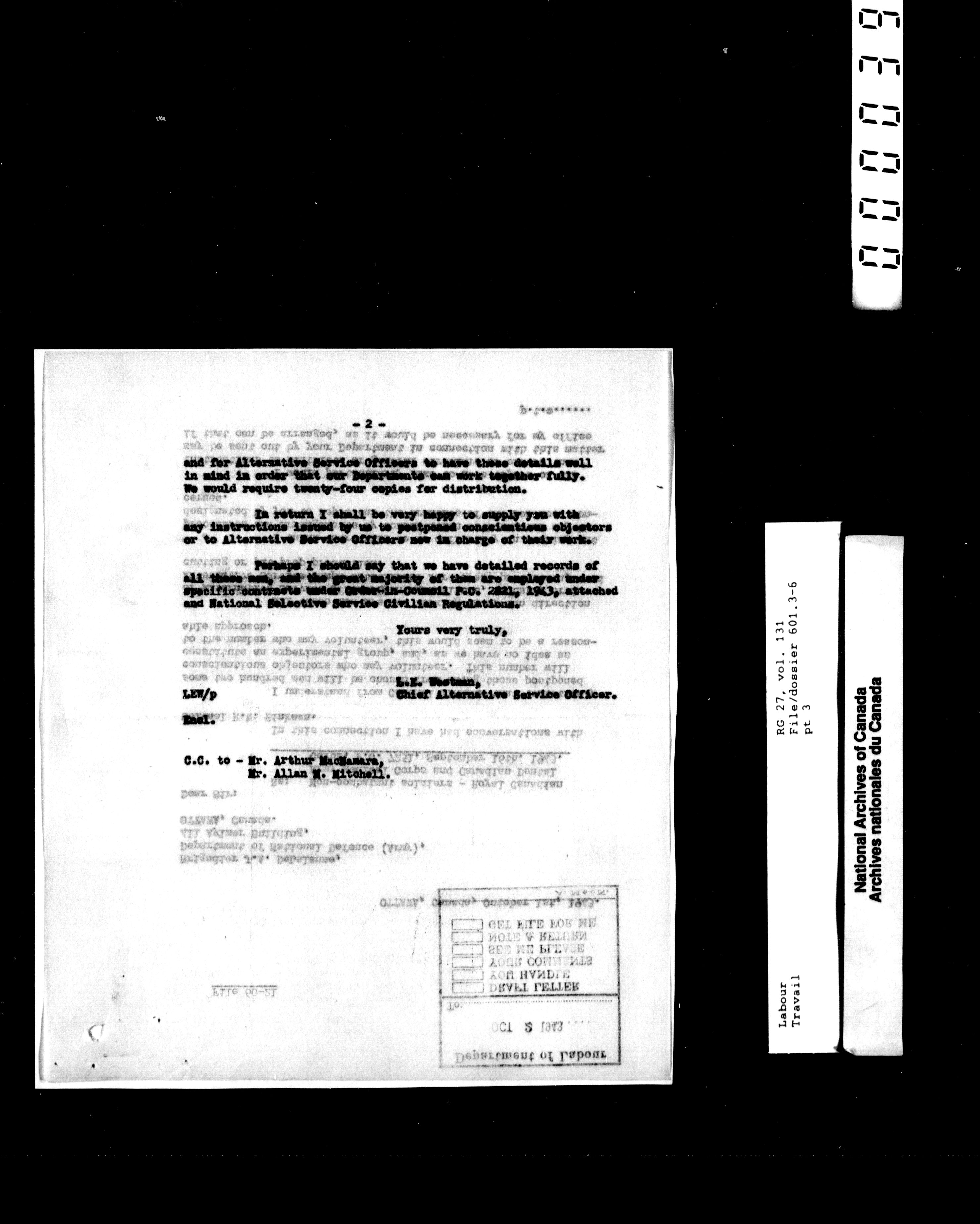 Department of Labour, Deputy Minister’s Office: Lacelle files : T-10115