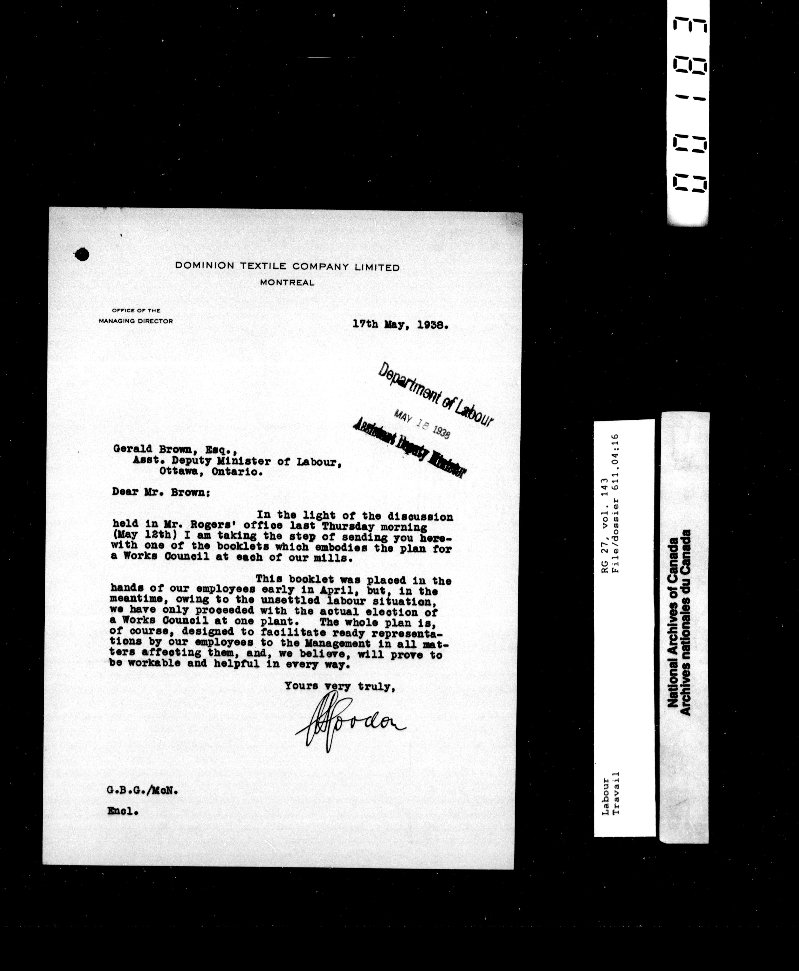 Department of Labour, Deputy Minister’s Office: Lacelle files : T-10120