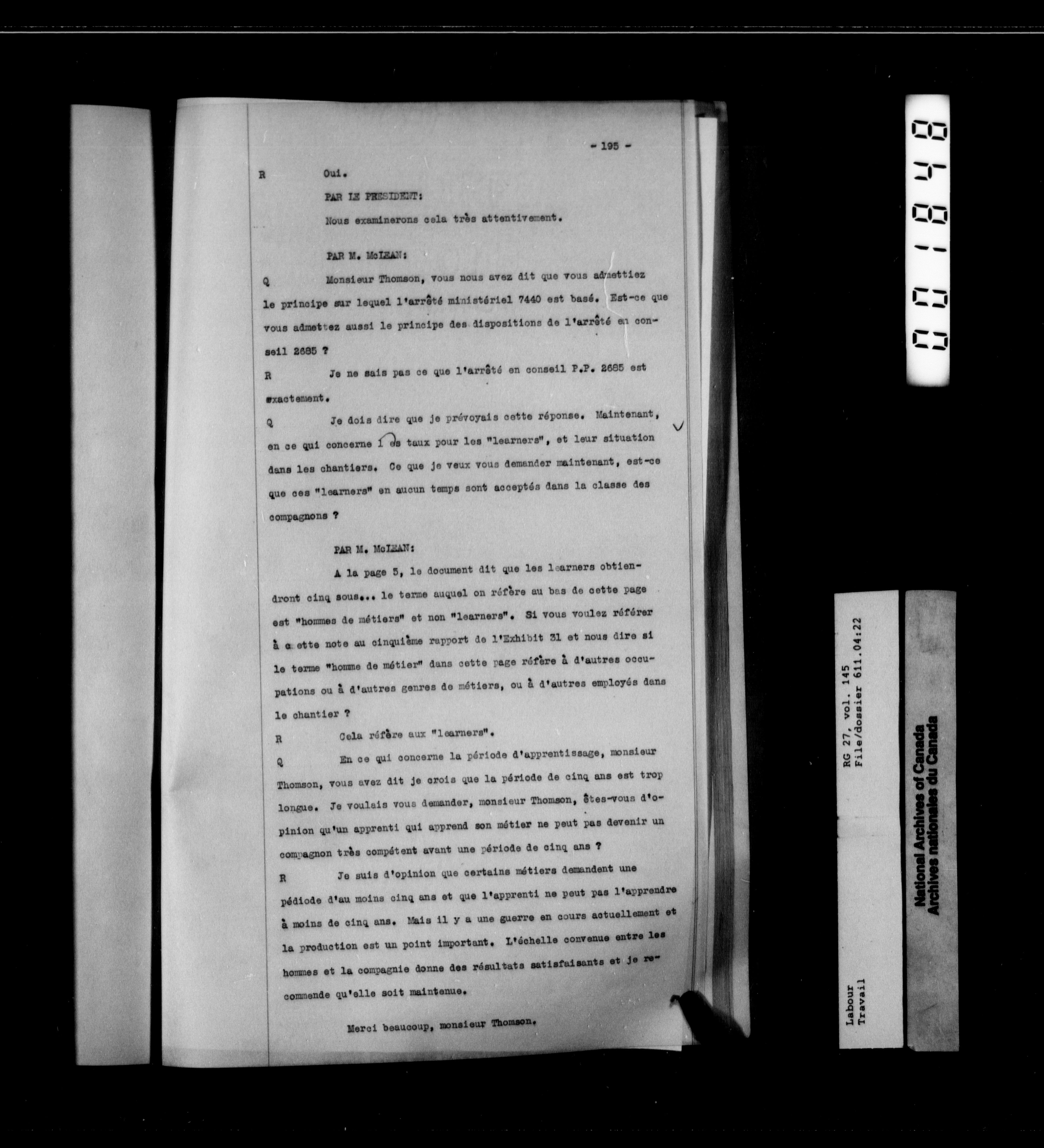 Department of Justice, Central Registry : numbered central registry files - 10121