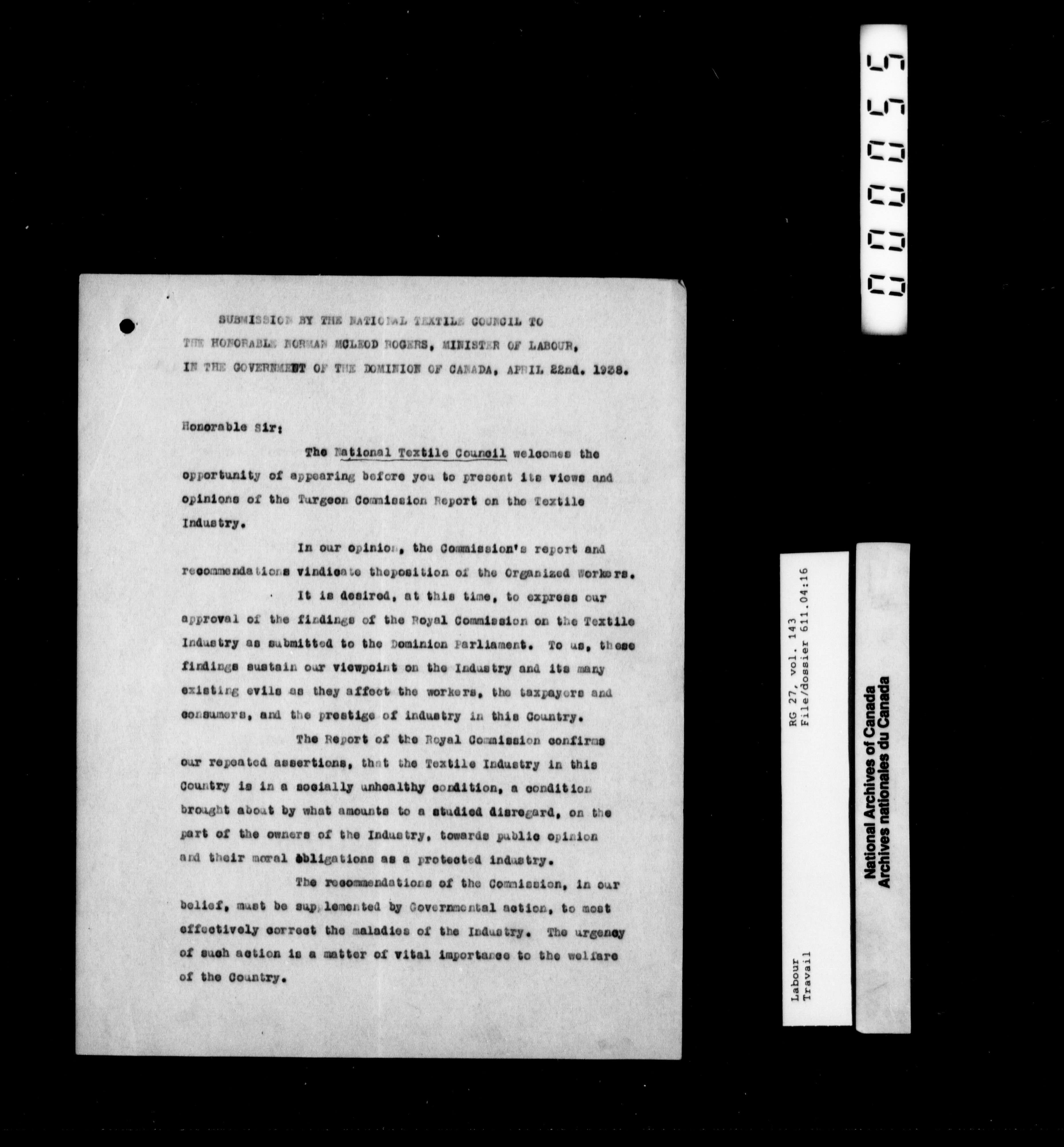 Department of Labour, Deputy Minister’s Office: Lacelle files : T-10121