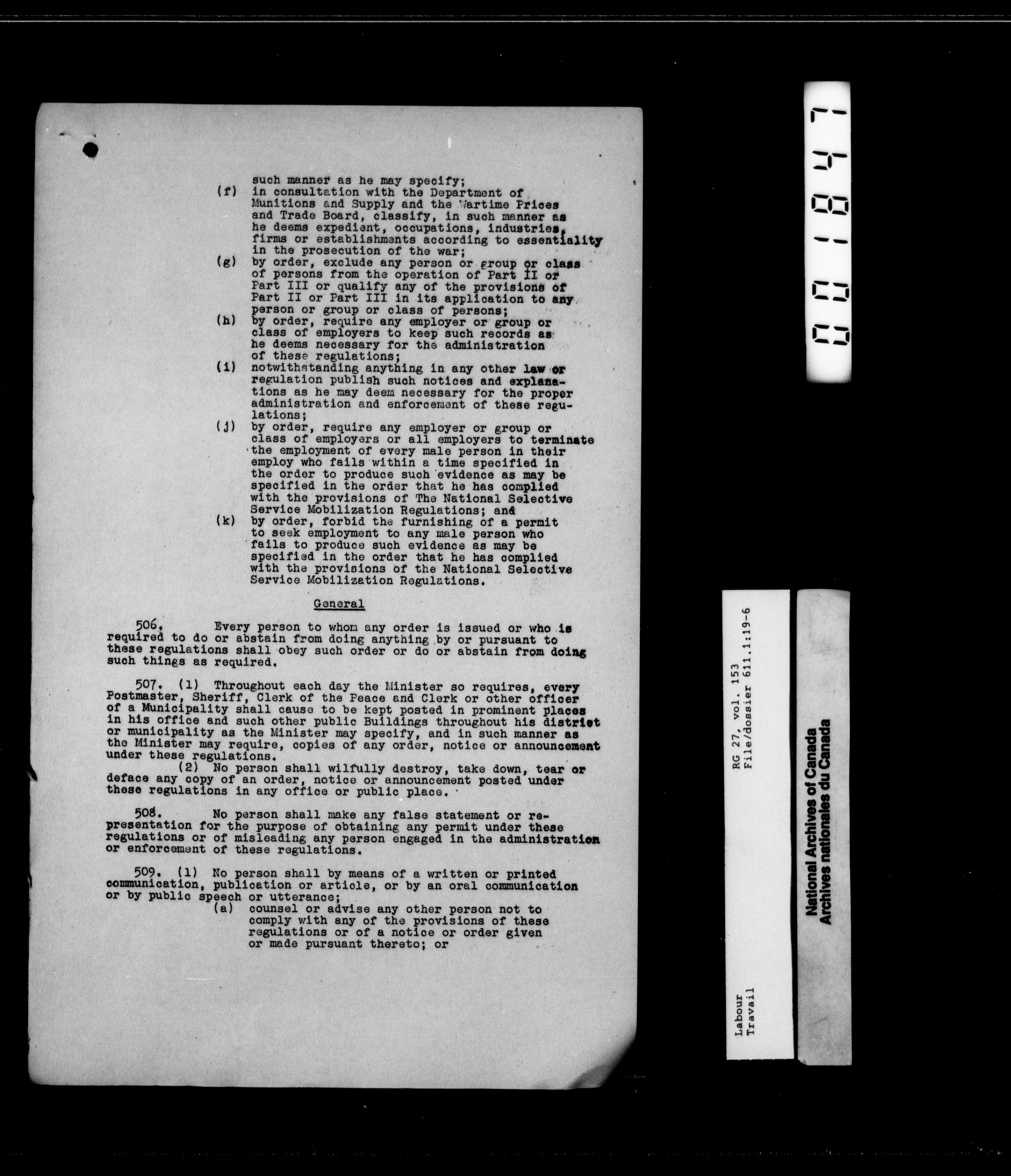 Department of Labour, Deputy Minister’s Office: Lacelle files : T-10126
