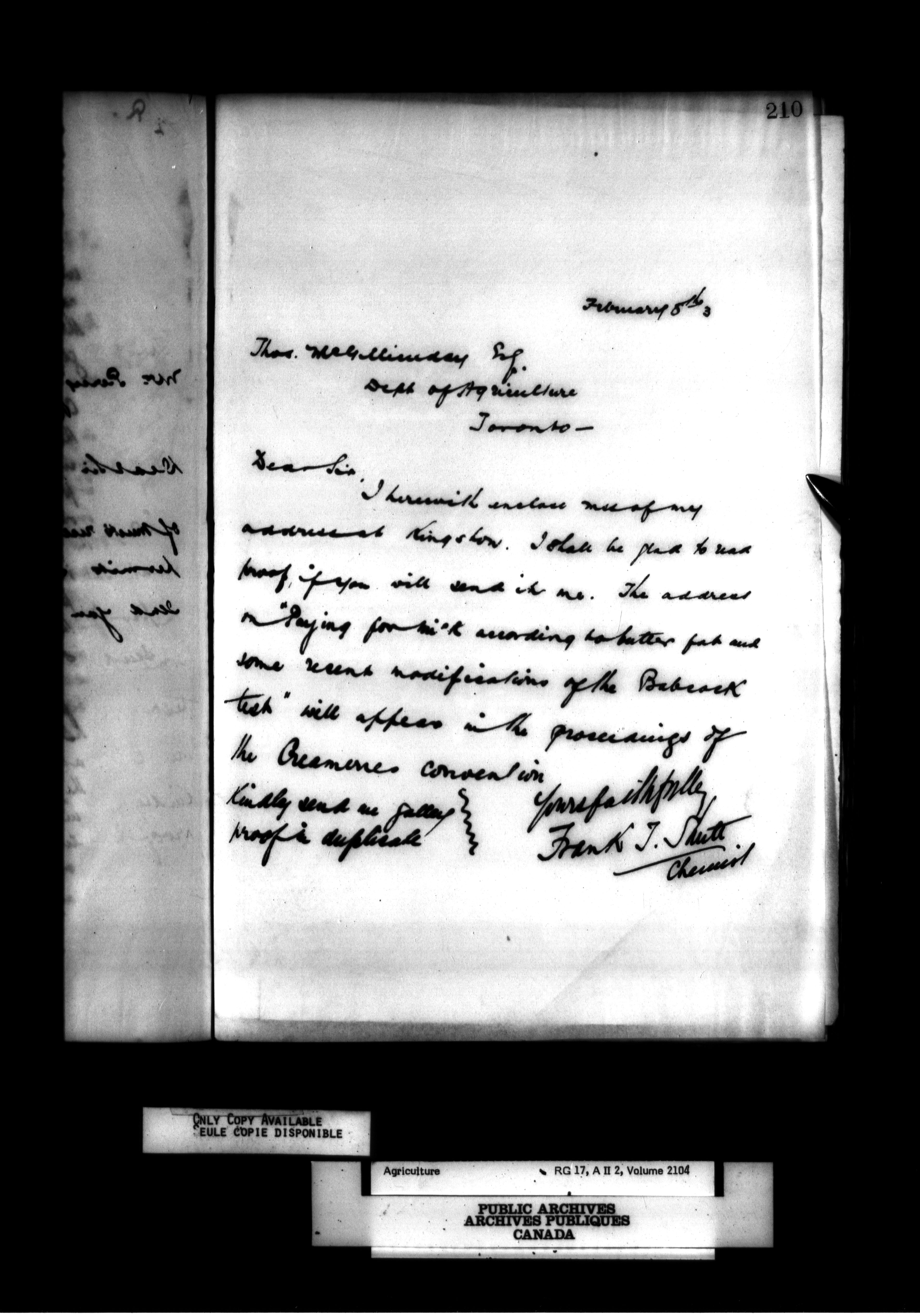 Department of Agriculture : Central Experimental Farm records, 1887-1984 - 1016