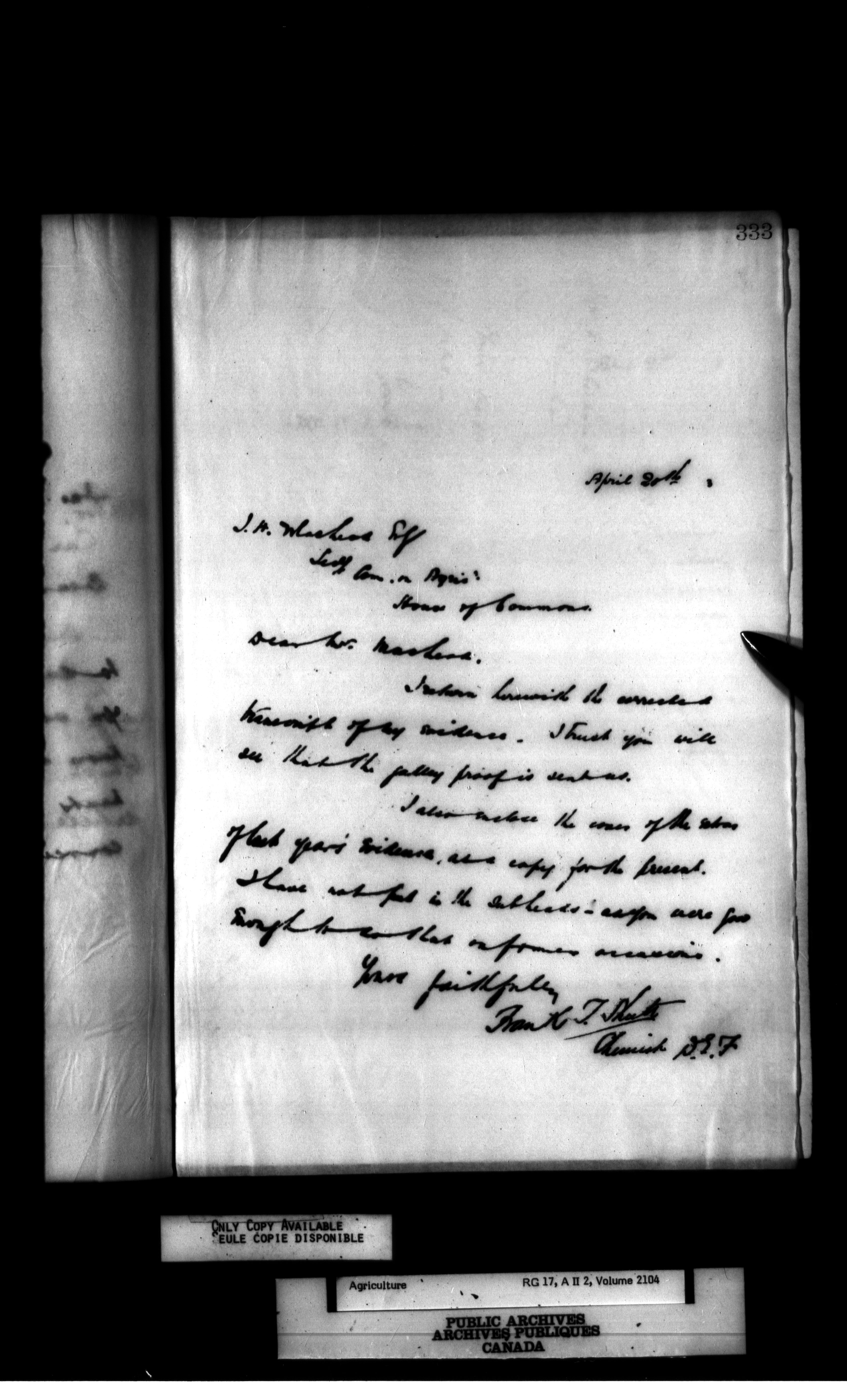 Department of Agriculture, Dominion Chemist : Letterbooks, 1889 - 1933 : T-1017