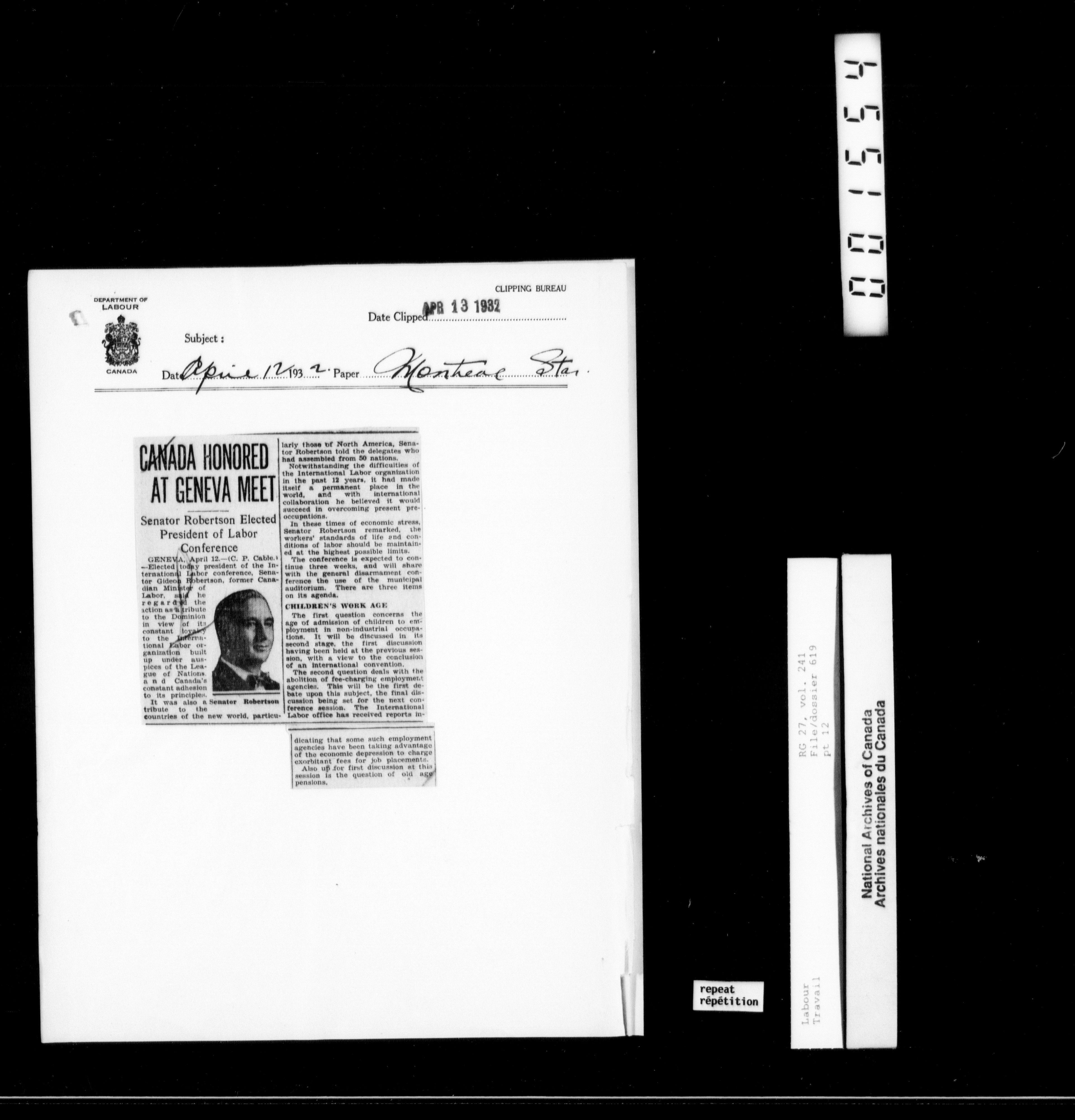 Department of Labour, Deputy Minister’s Office: Lacelle files : T-10171