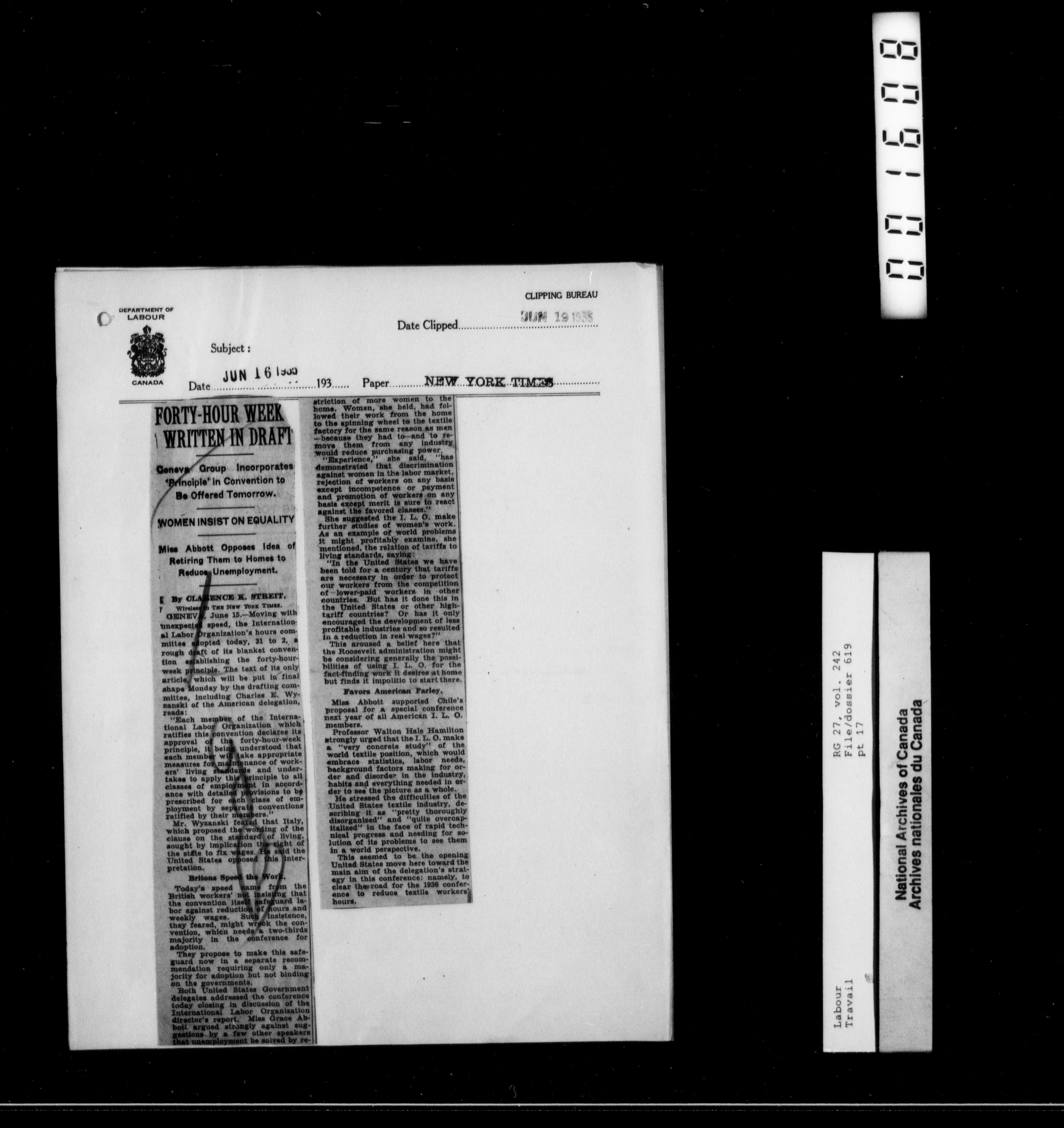 Department of Labour, Deputy Minister’s Office: Lacelle files : T-10172