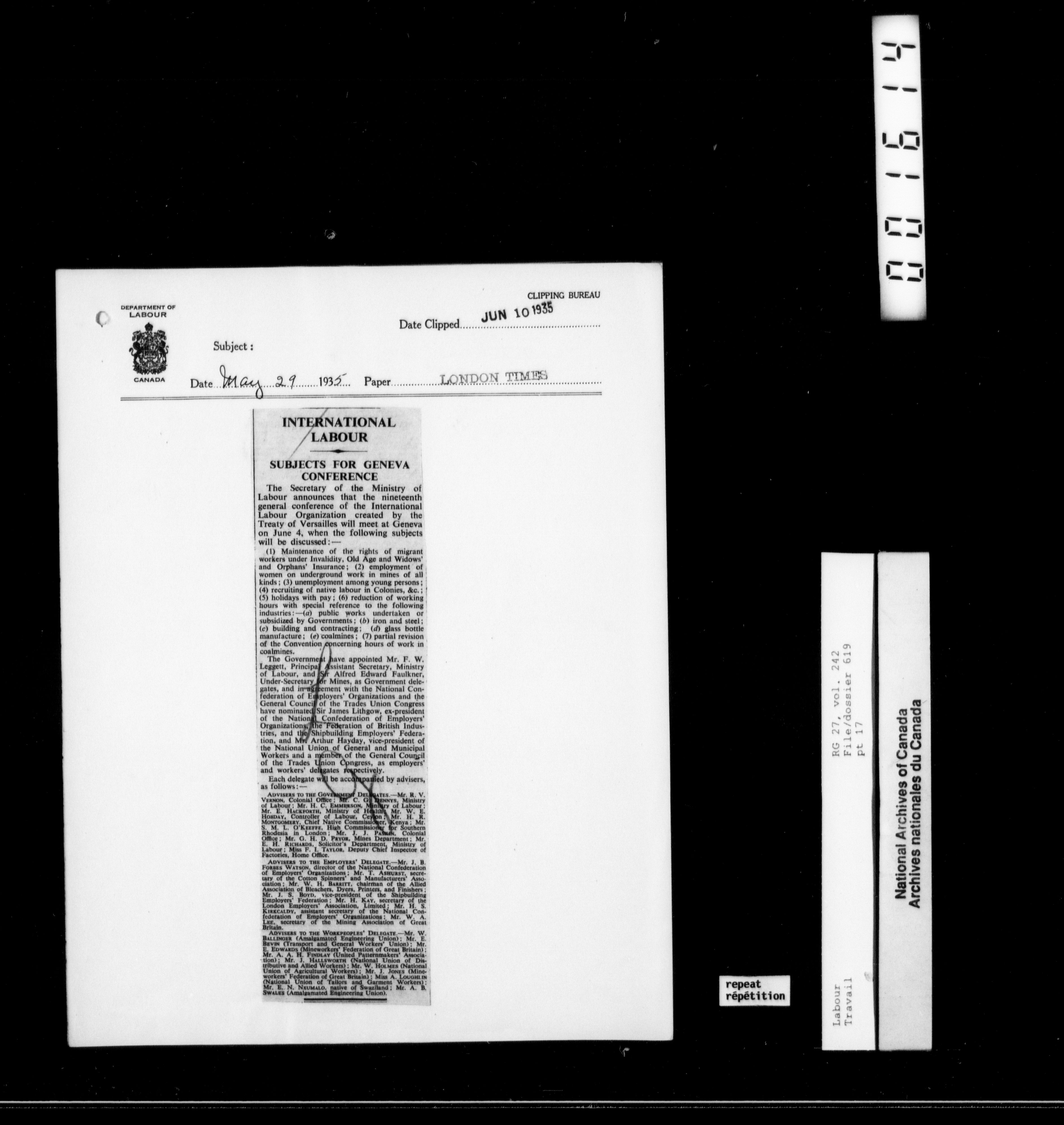 Department of Labour, Deputy Minister’s Office: Lacelle files : T-10172