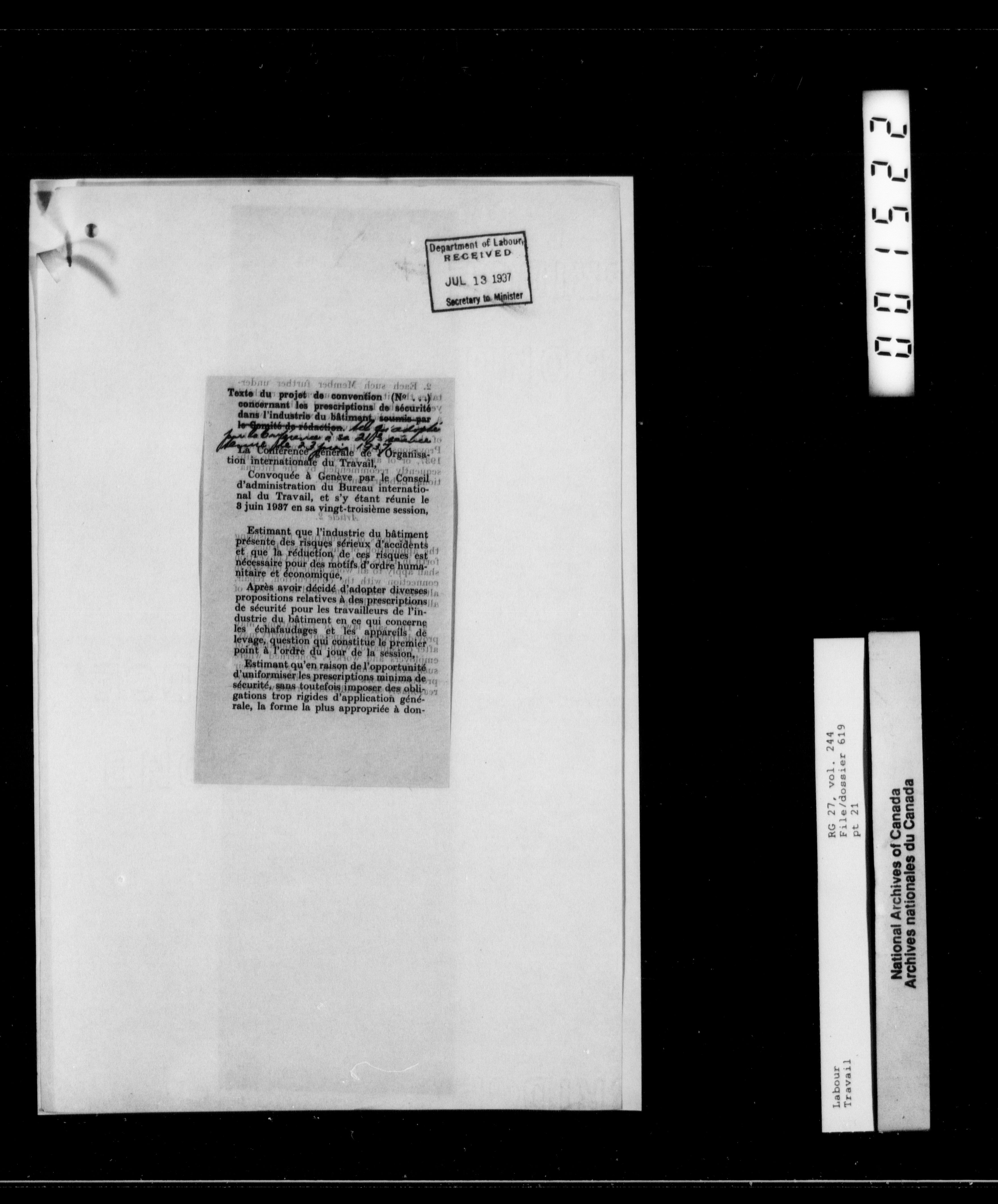 Department of Labour, Deputy Minister’s Office: Lacelle files : T-10173