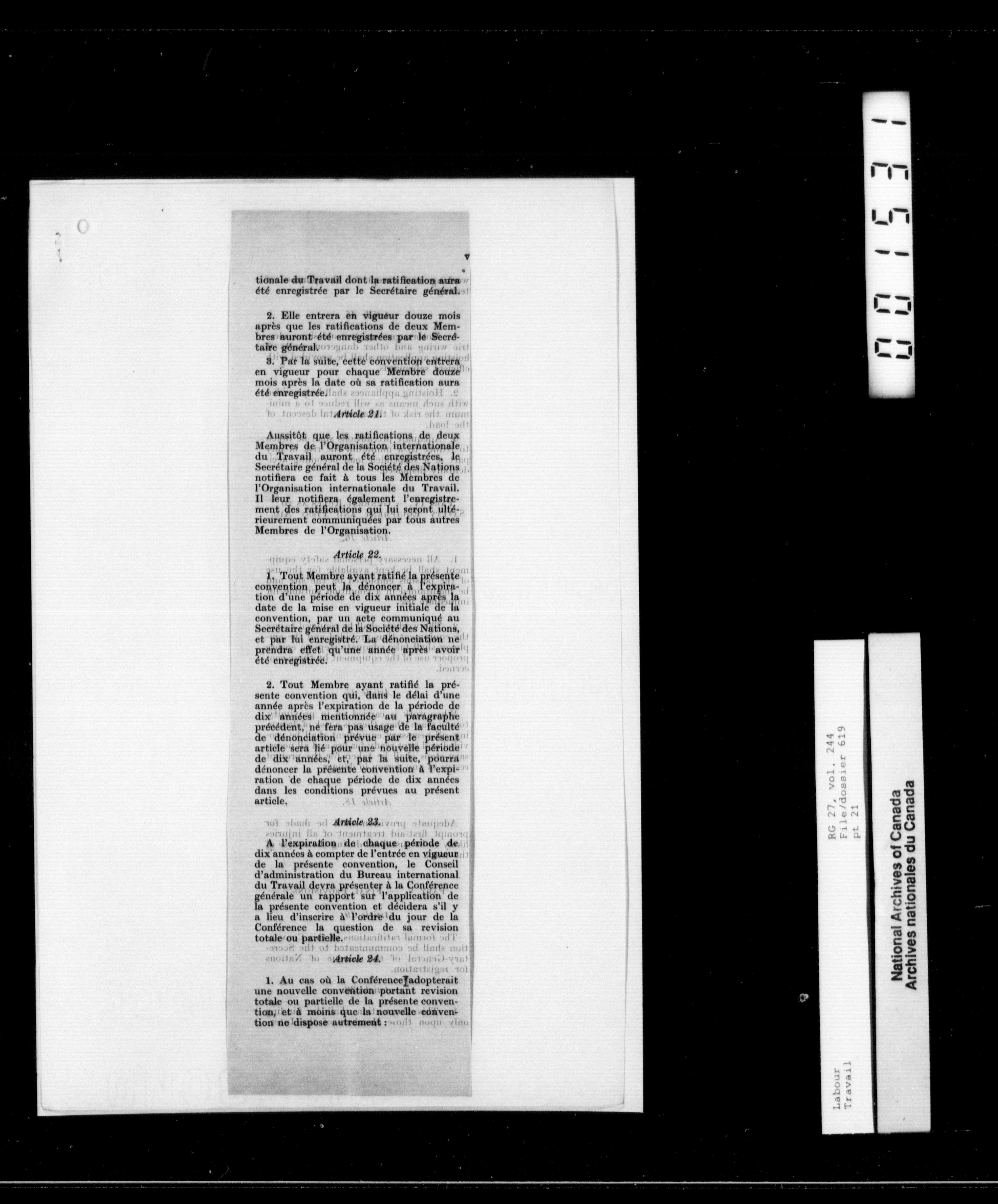 Department of Labour, Deputy Minister’s Office: Lacelle files : T-10173