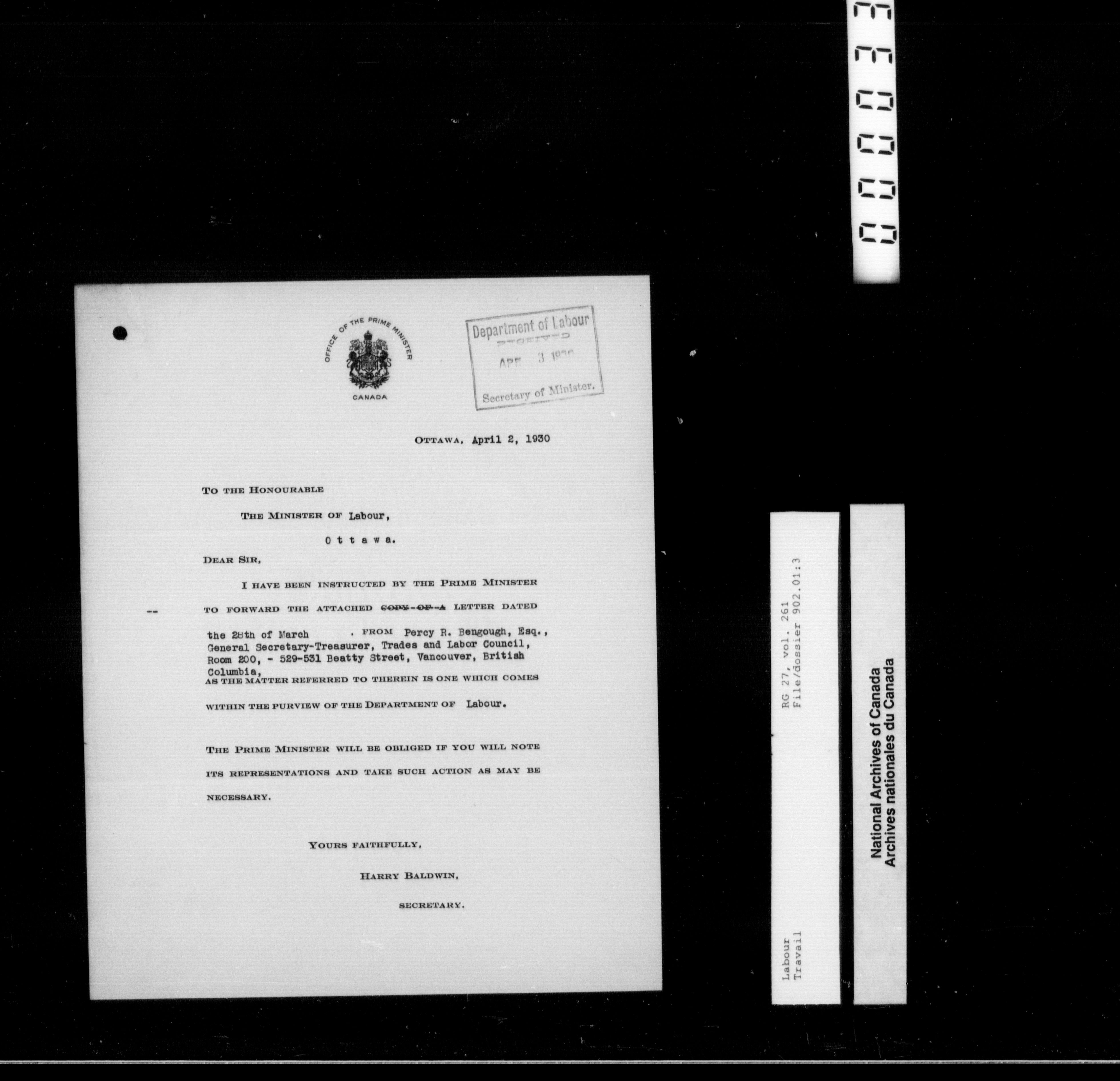 Department of Labour, Deputy Minister’s Office: Lacelle files : T-10183