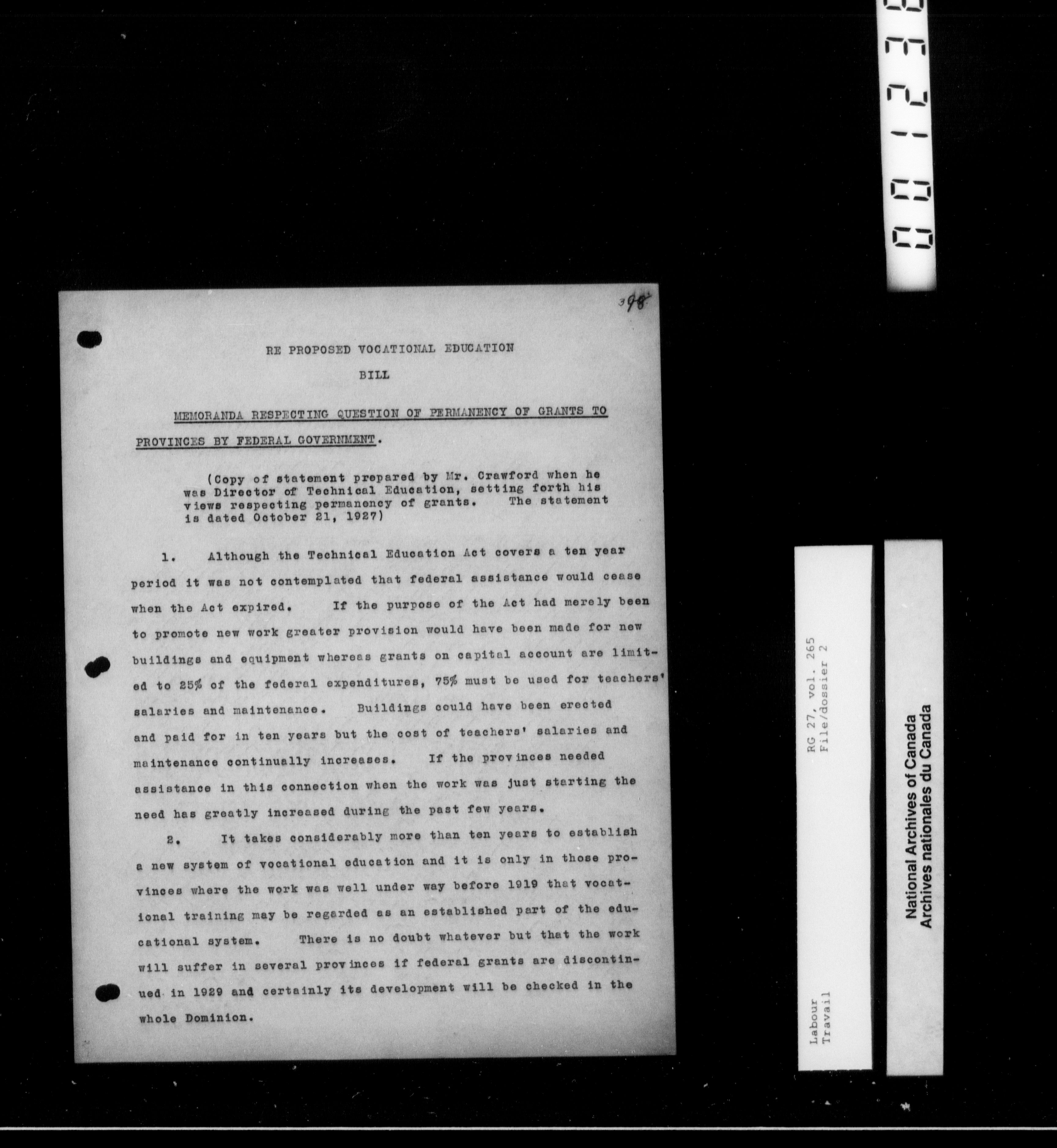Department of Labour, Deputy Minister’s Office: Lacelle files : T-10184