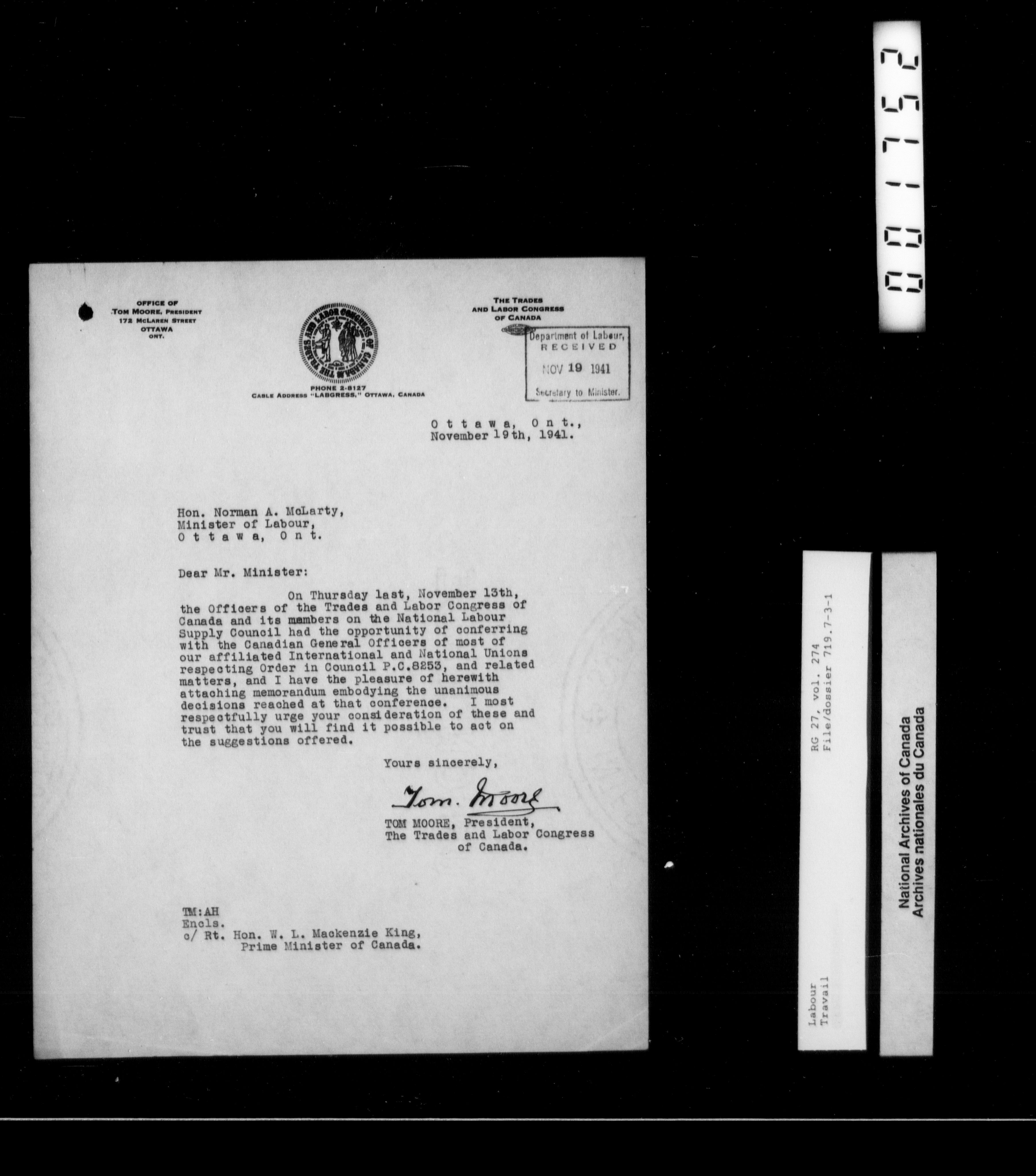 Department of Labour, Deputy Minister’s Office: Lacelle files : T-10189