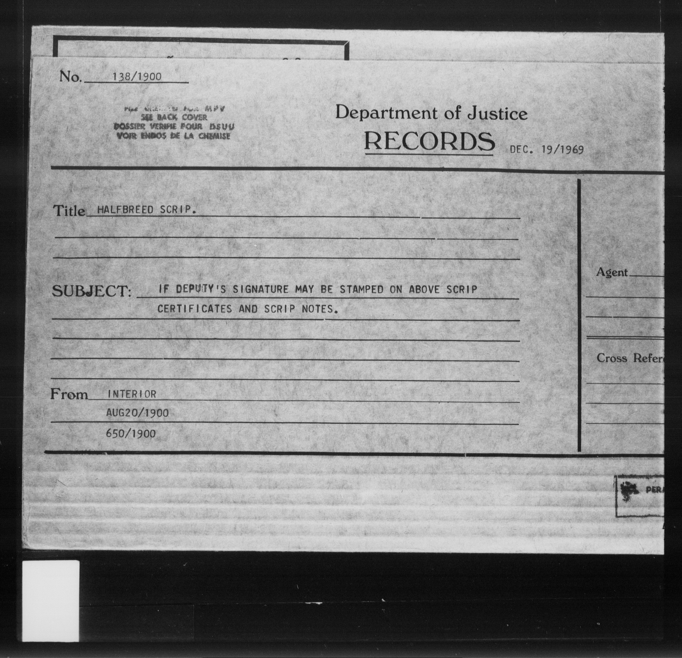 Department of Justice, Central Registry : legal opinions and material of precedential value, 1863-1963 - 10195