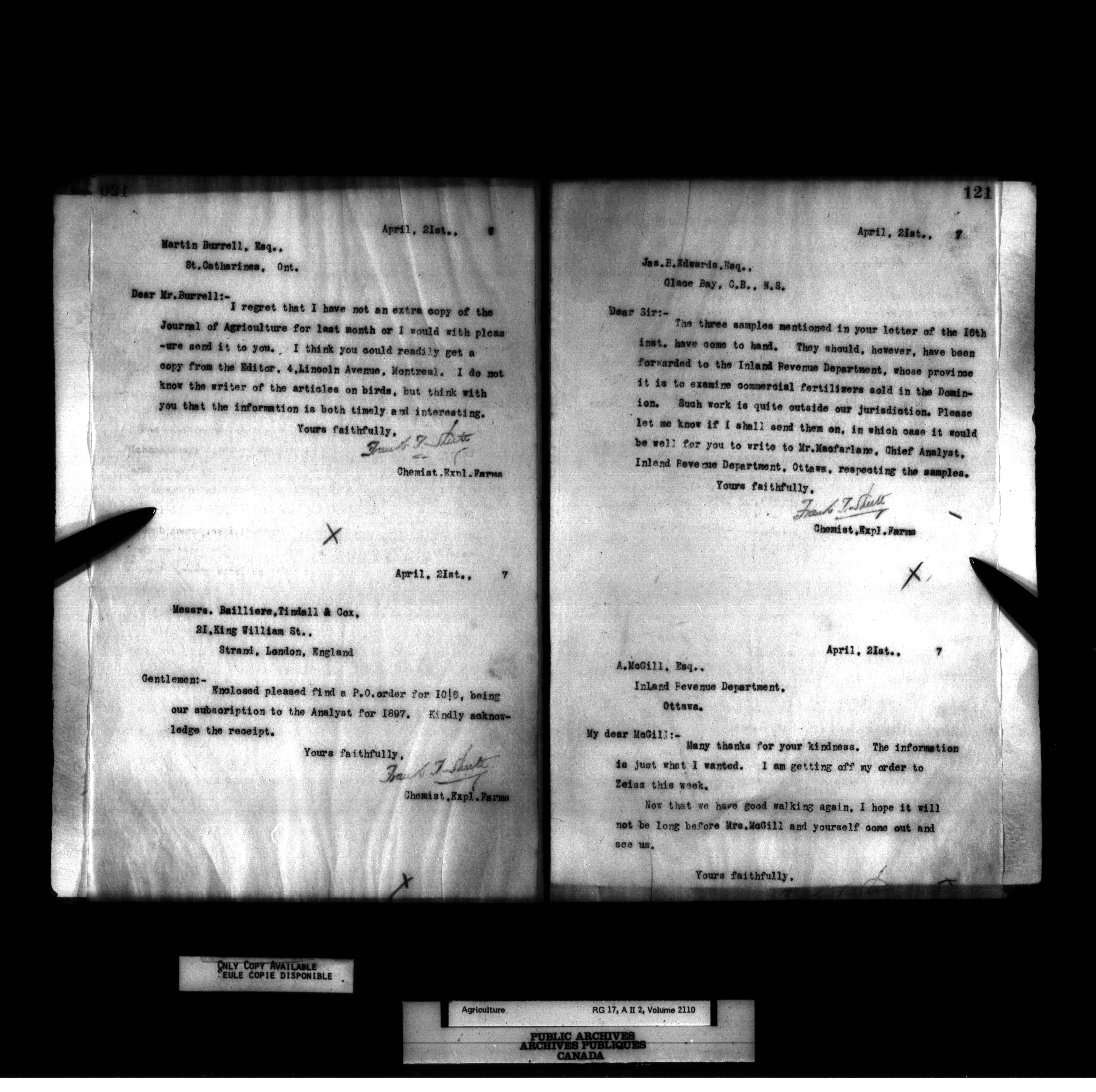 Department of Agriculture : Dominion Chemist, letterbooks - 1020