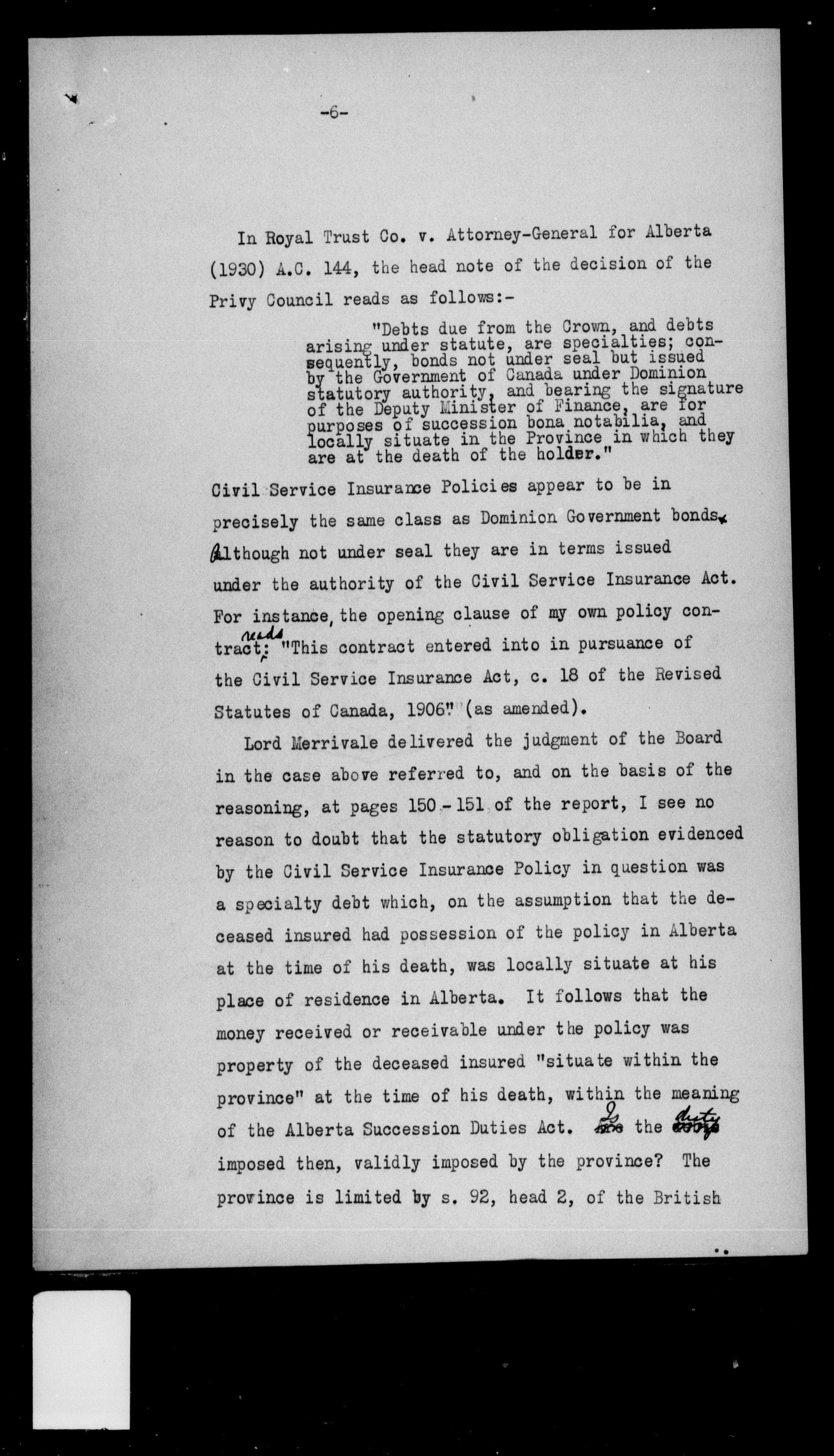 Department of Justice, Central Registry : legal opinions and material of precedential value : T-10209