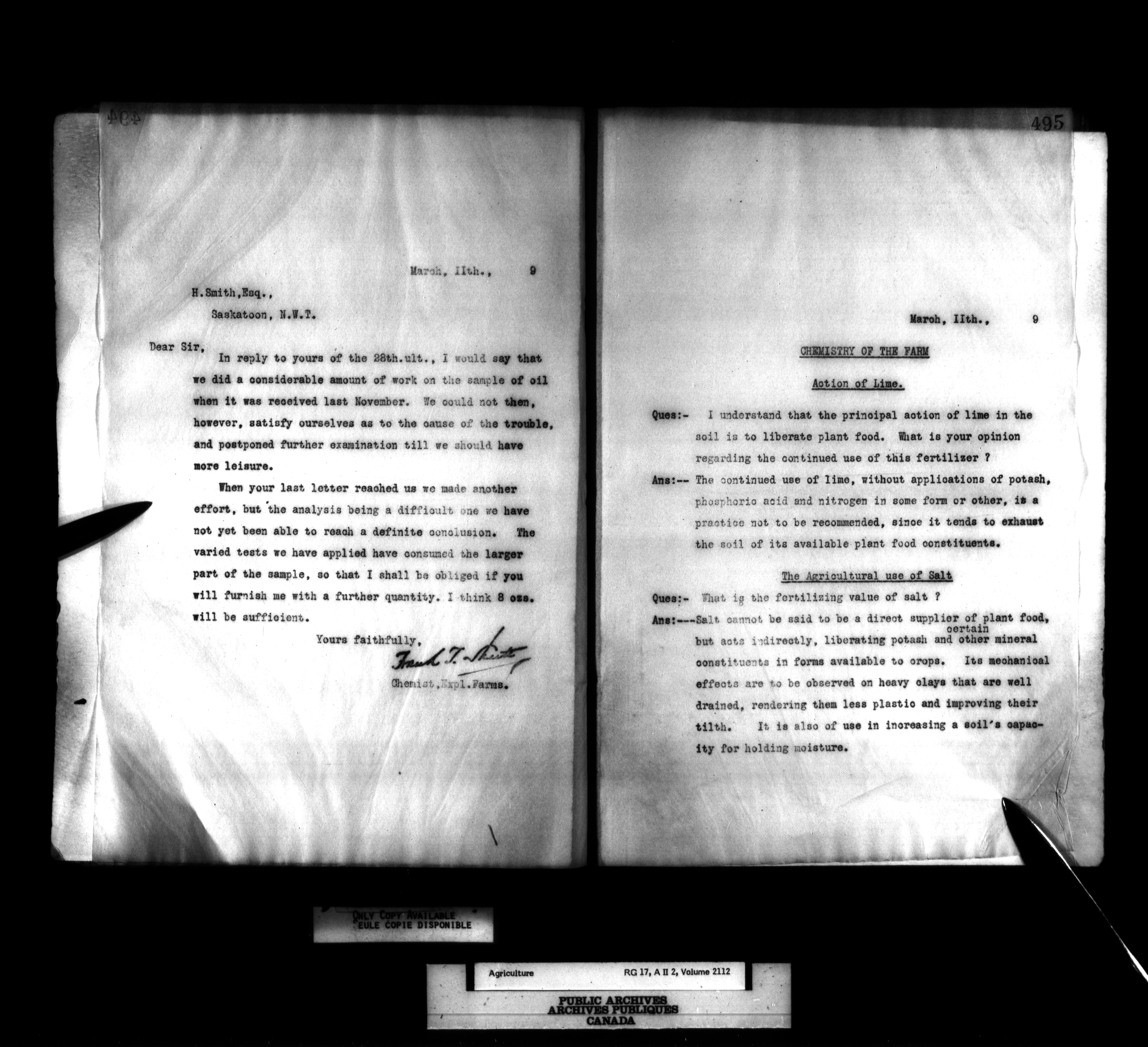 Department of Agriculture, Dominion Chemist : Letterbooks, 1889 - 1933 : T-1021