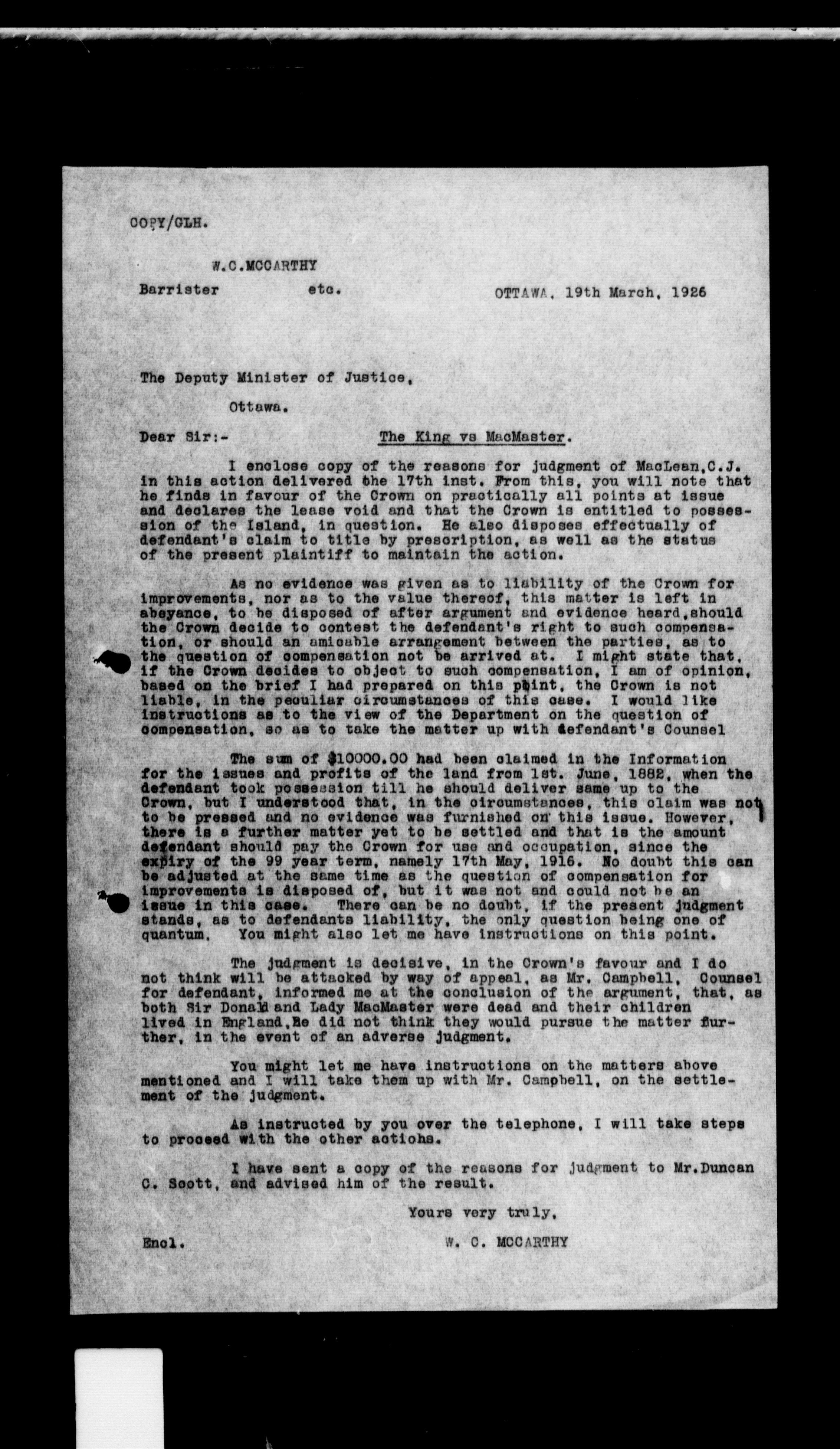Department of Justice, Central Registry : legal opinions and material of precedential value : T-10236