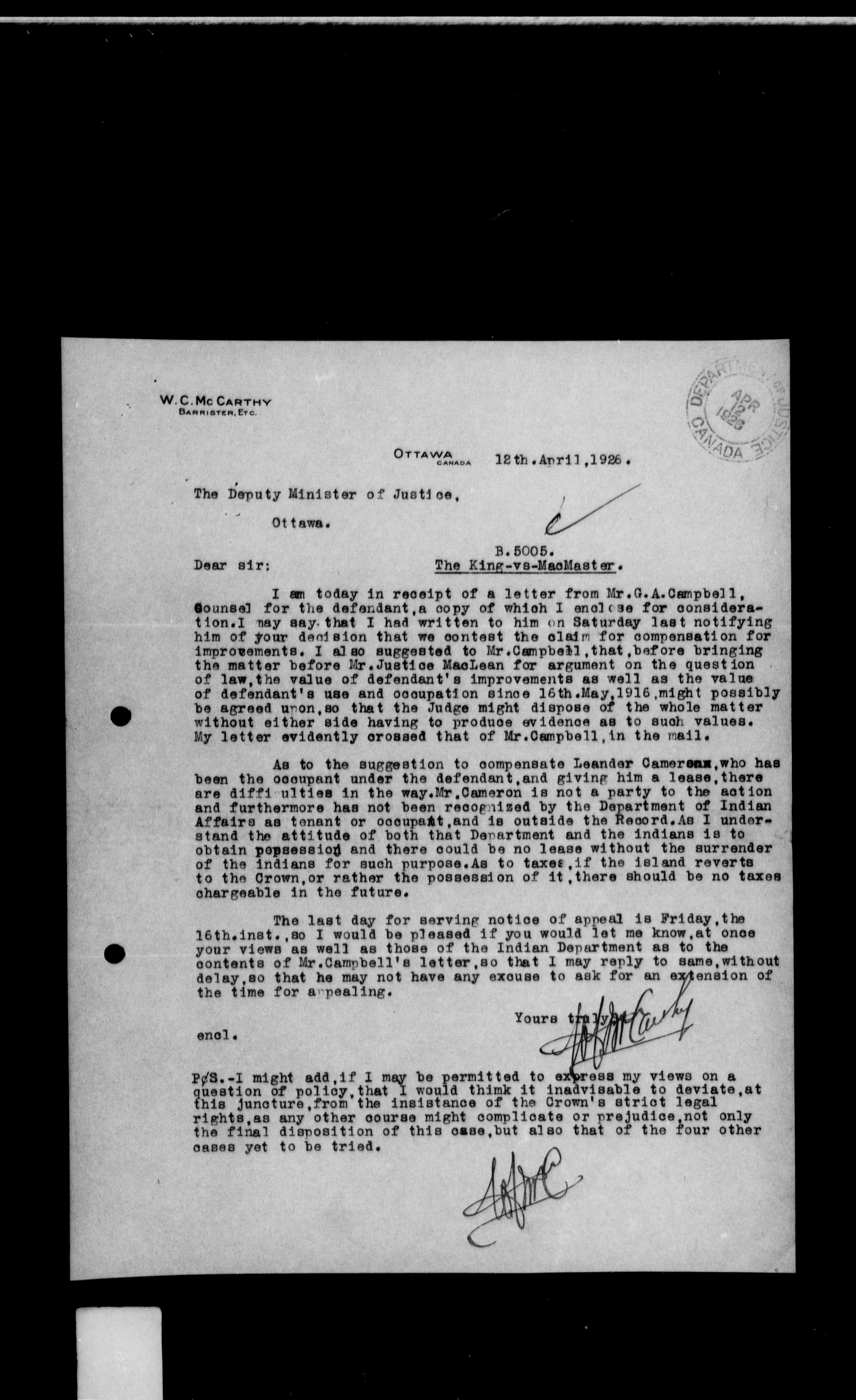 Department of Justice, Central Registry : legal opinions and material of precedential value : T-10236