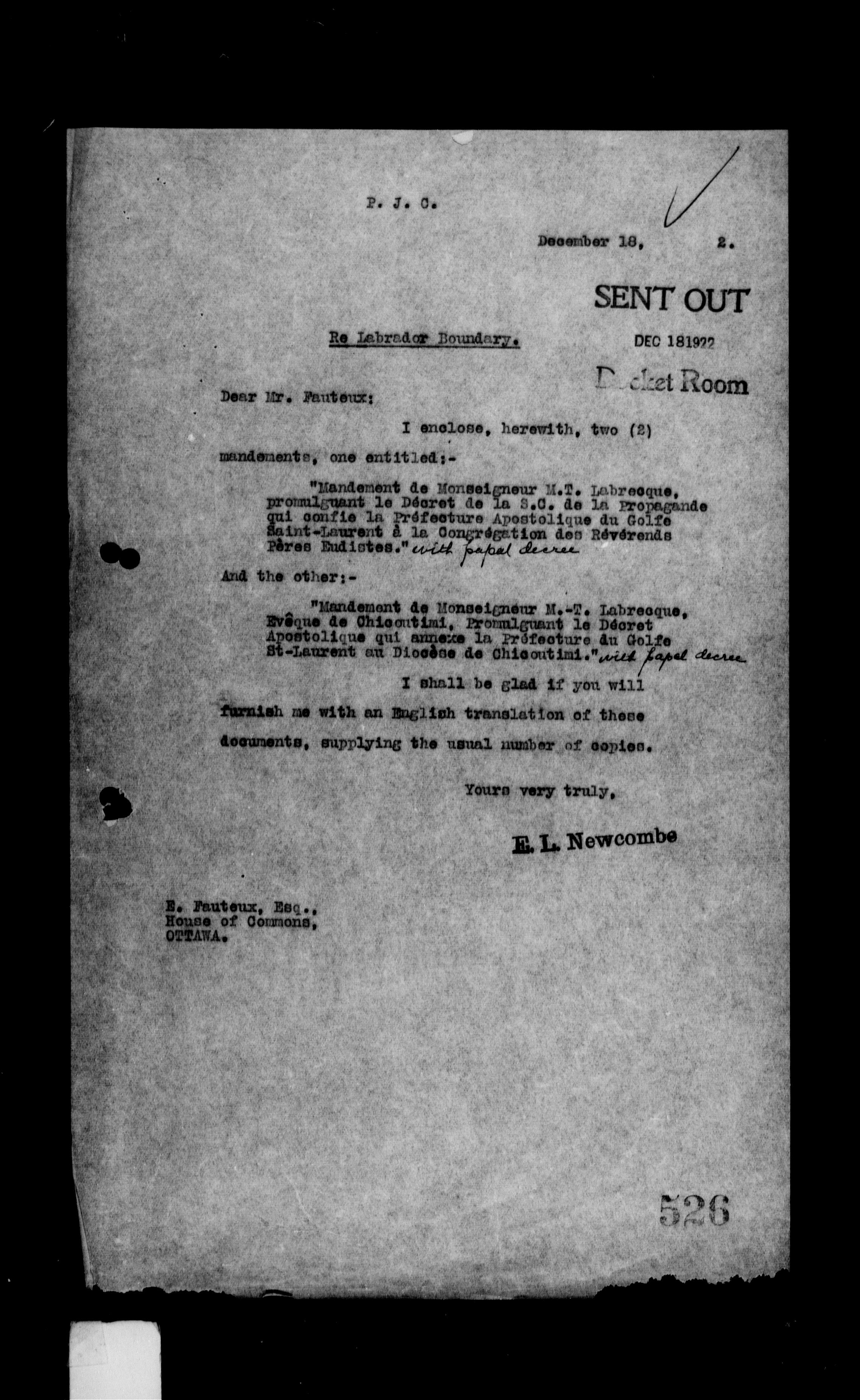 Department of Justice, Central Registry : legal opinions and material of precedential value : T-10243