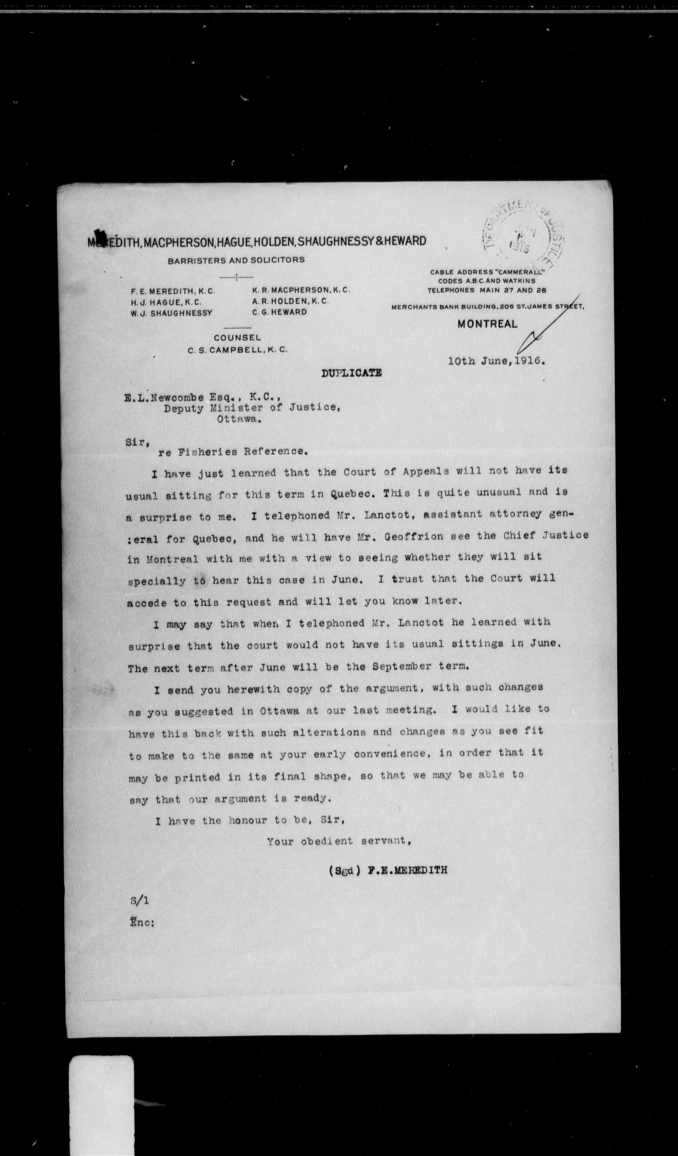 Department of Justice, Central Registry : legal opinions and material of precedential value : T-10254