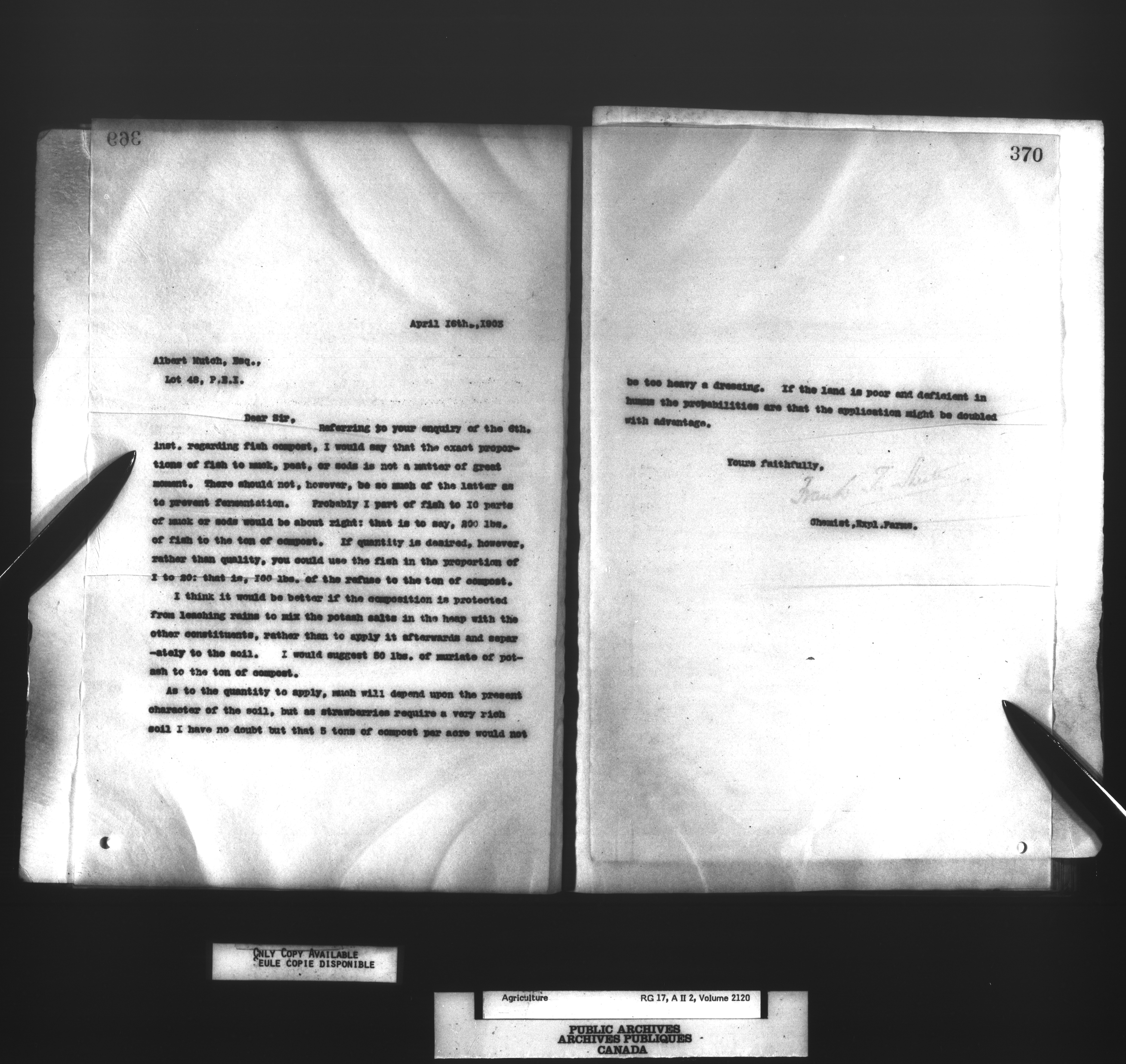 Department of Agriculture : Dominion Chemist, letterbooks - 1026