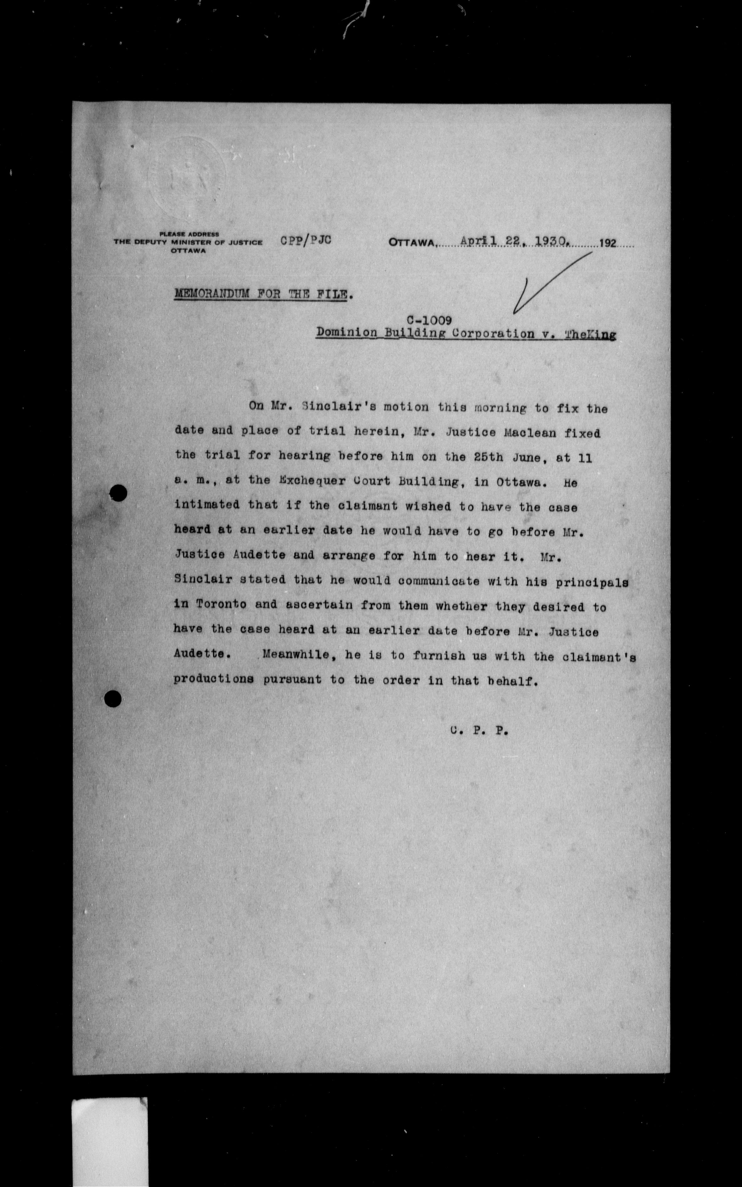 Department of Justice - Legal opinions and material of precedential value (1863-1963) - 10261