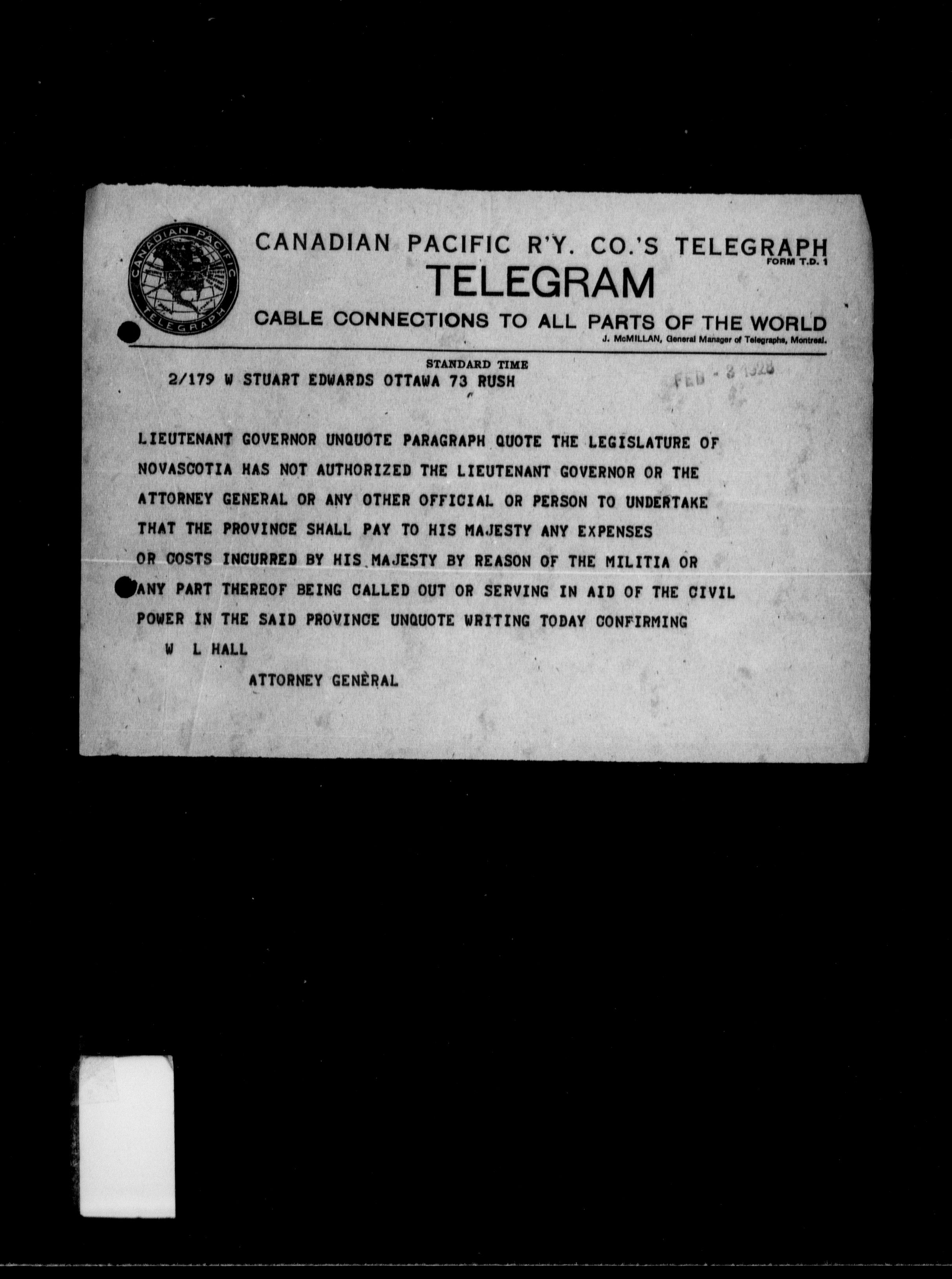 Department of Justice, Central Registry : legal opinions and material of precedential value : T-10264