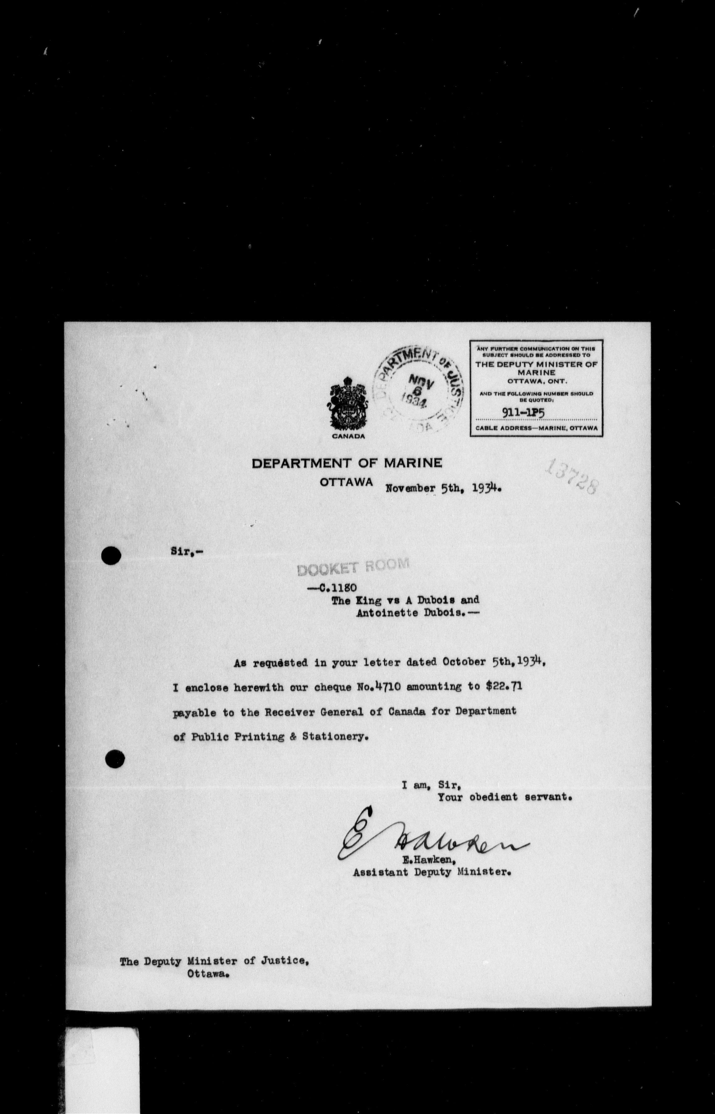 Department of Justice, Central Registry : legal opinions and material of precedential value : T-10269