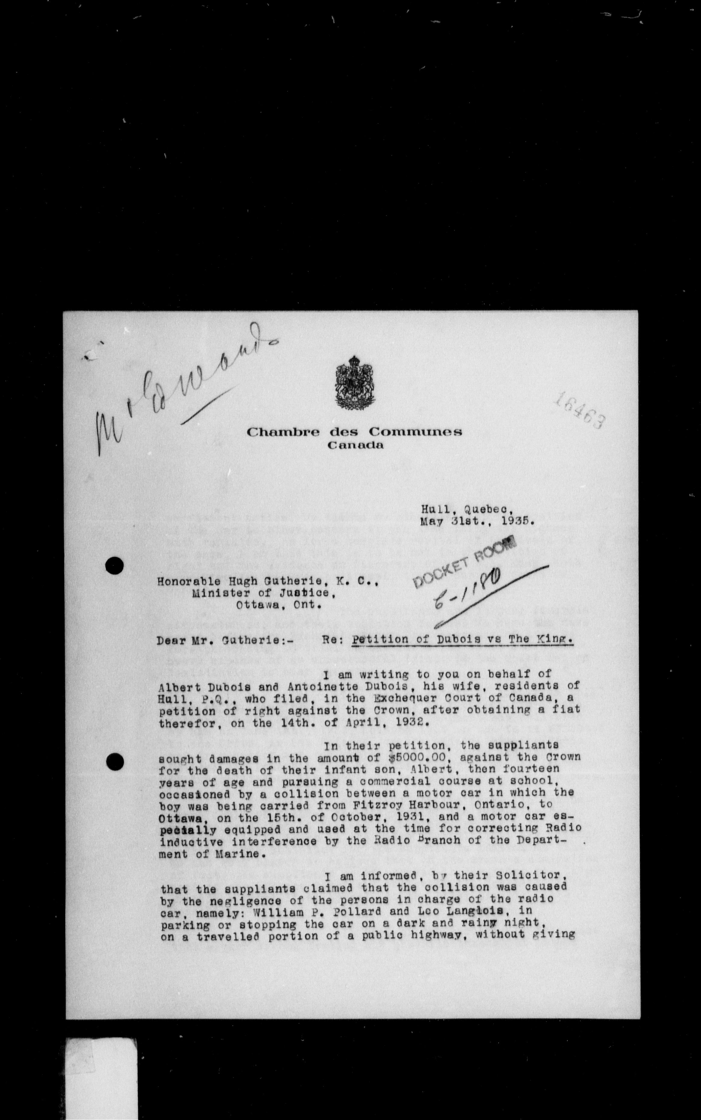 Department of Justice, Central Registry : legal opinions and material of precedential value : T-10269