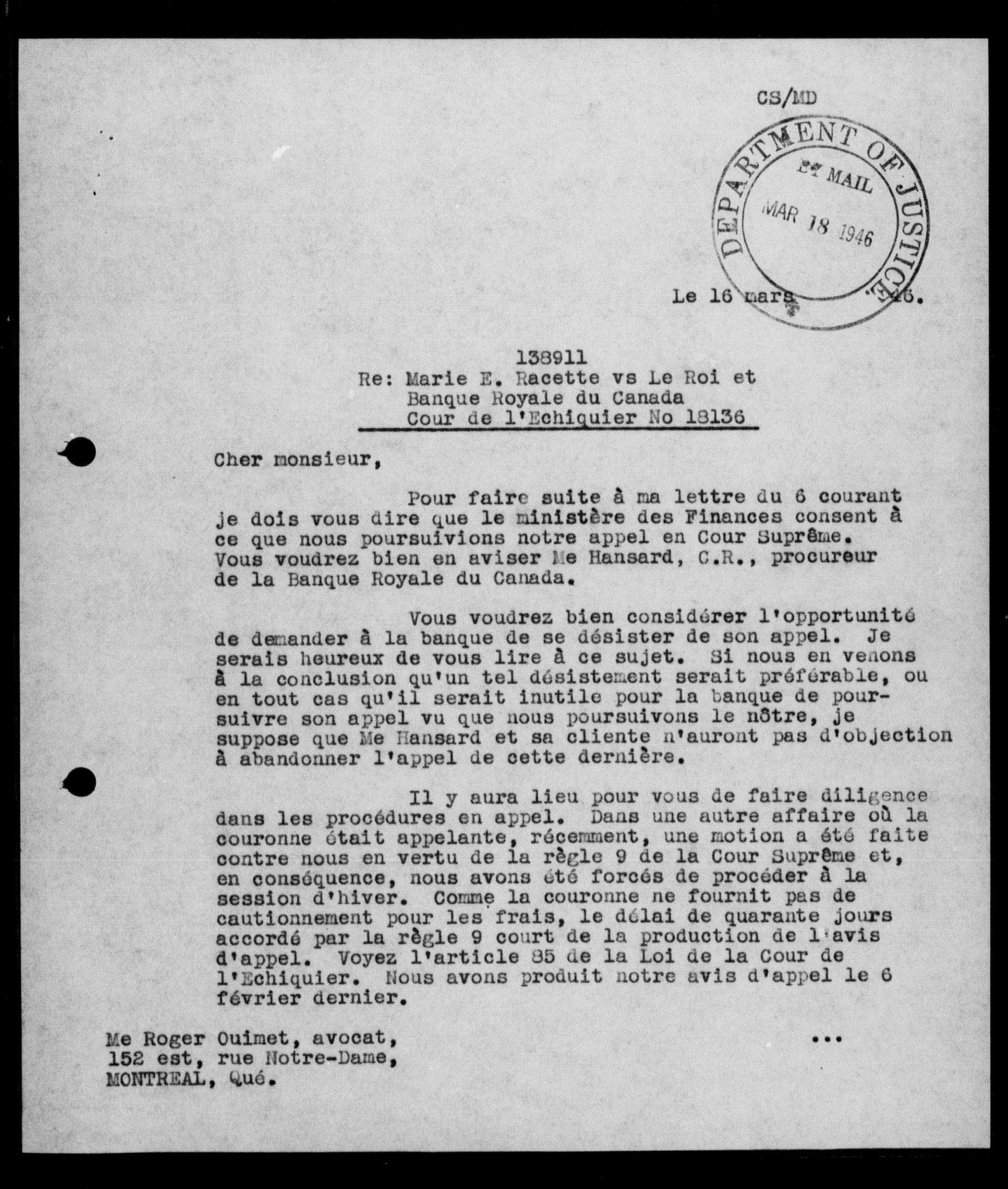 Department of Justice, Central Registry : legal opinions and material of precedential value : T-10286