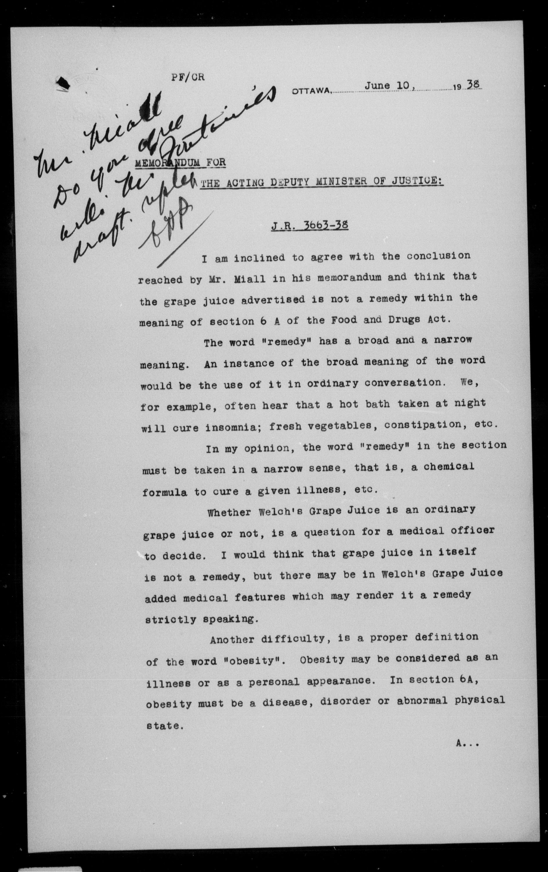 Department of Justice - Legal opinions and material of precedential value (1863-1963) - 10288
