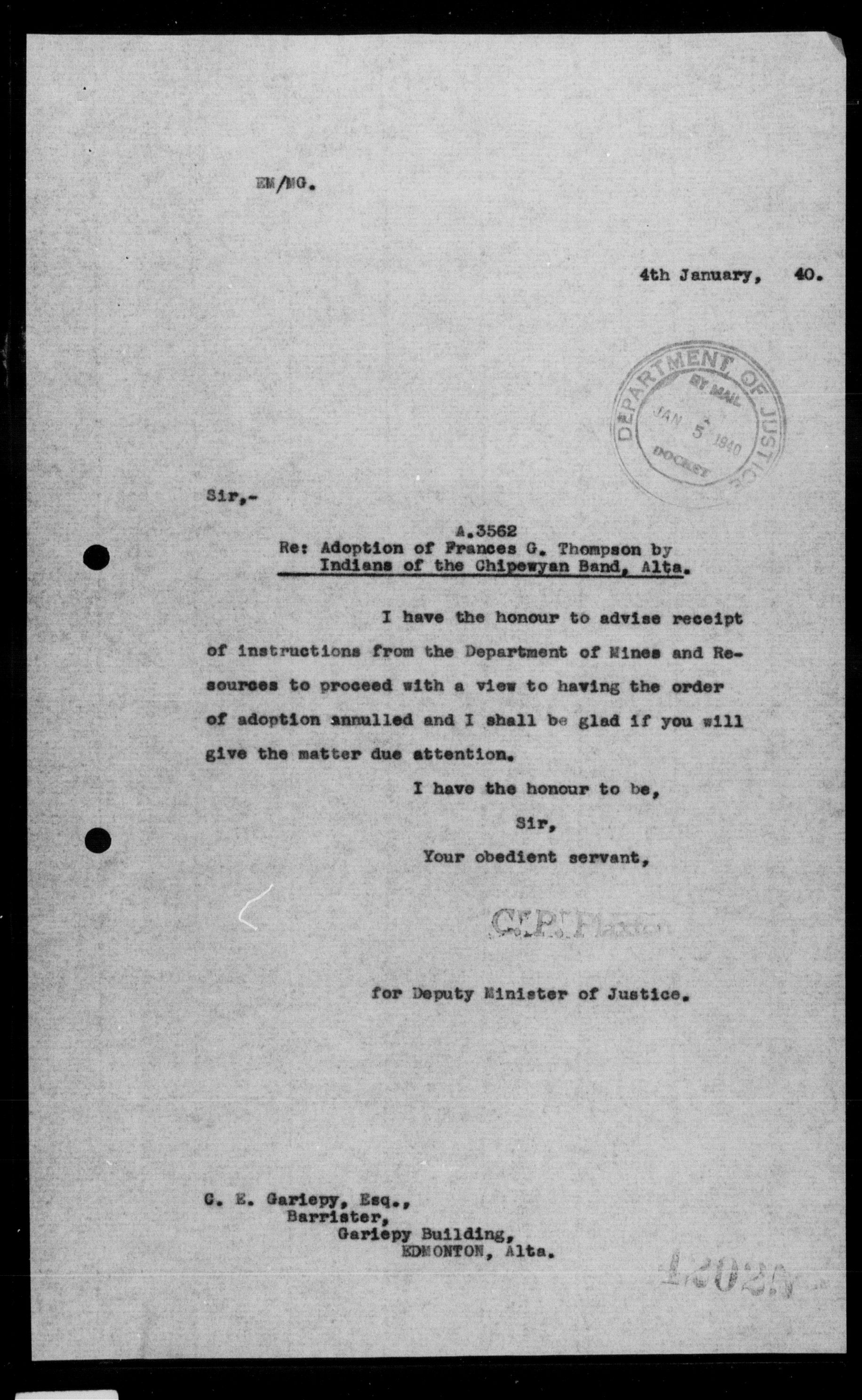 Department of Justice, Central Registry : legal opinions and material of precedential value : T-10289