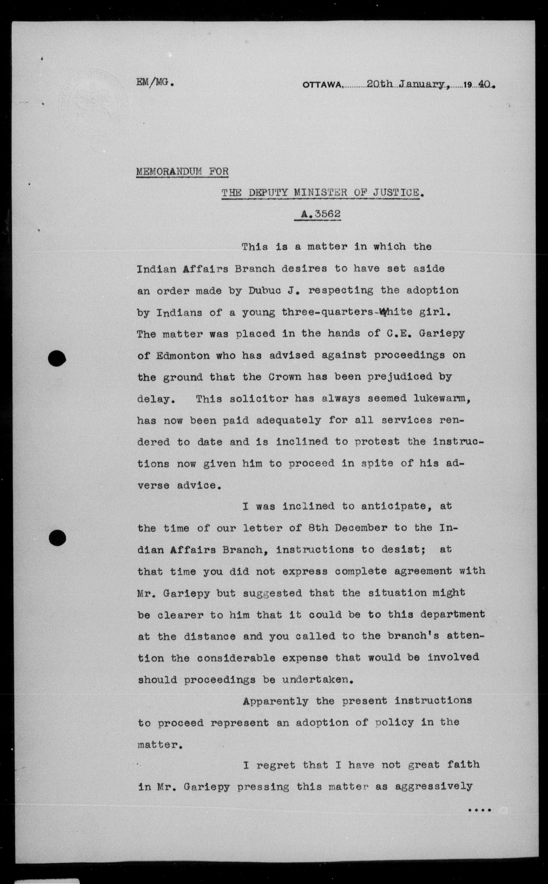 Department of Justice, Central Registry : legal opinions and material of precedential value : T-10289