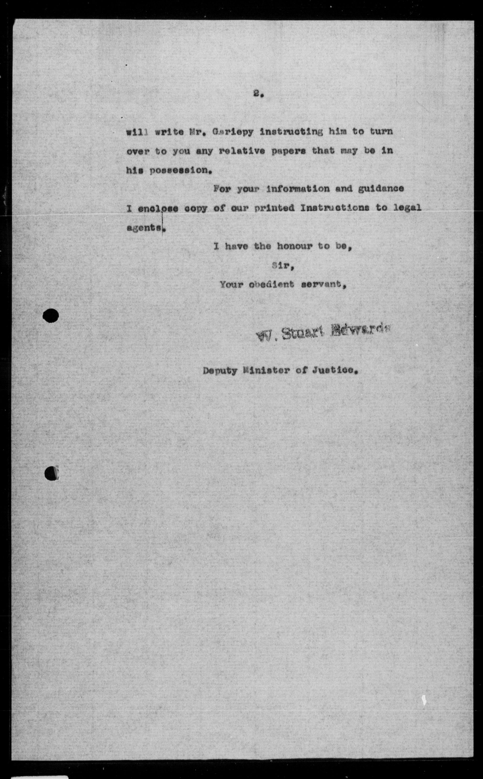 Department of Justice, Central Registry : legal opinions and material of precedential value : T-10289