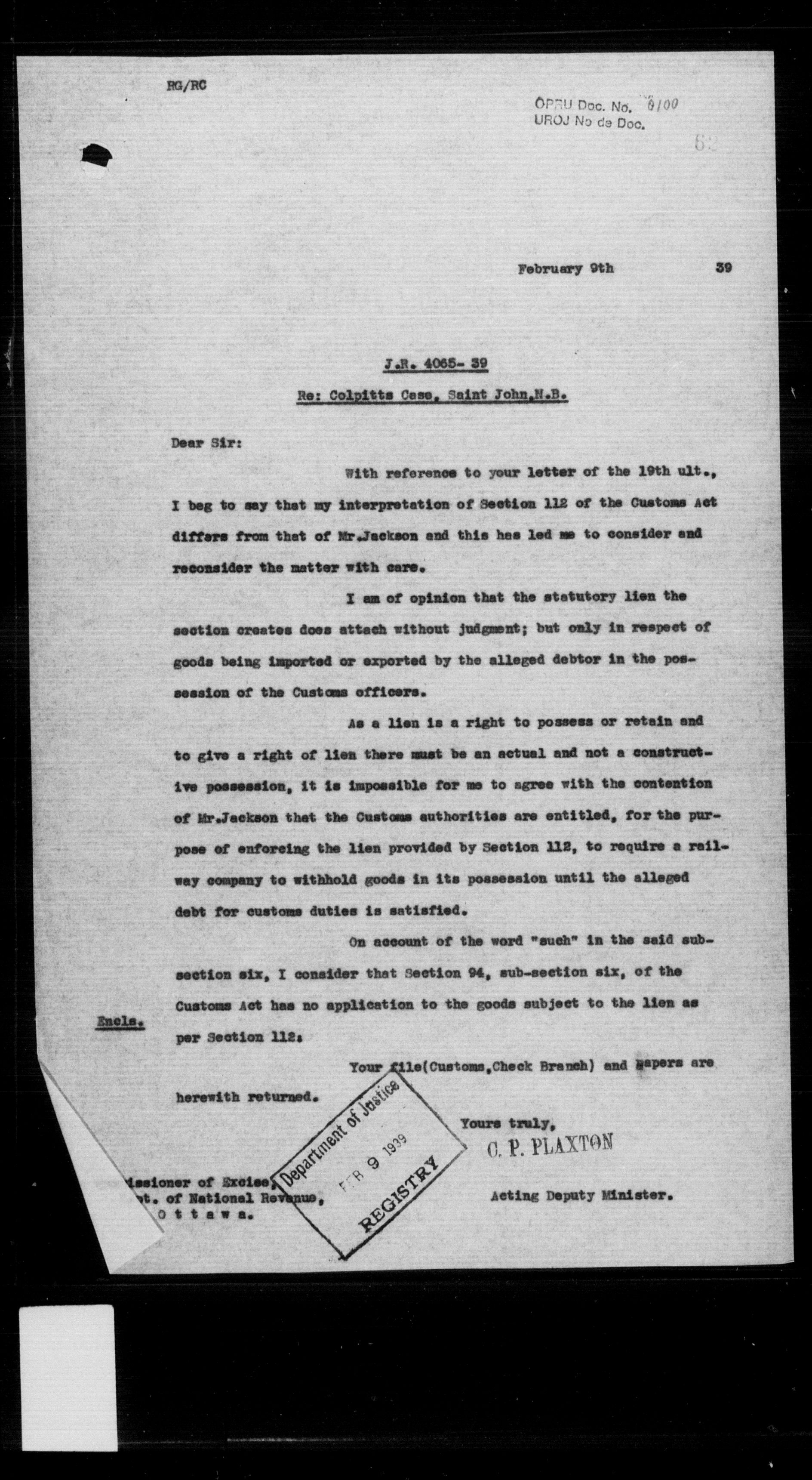 Department of Justice - Legal opinions and material of precedential value (1863-1963) - 10290