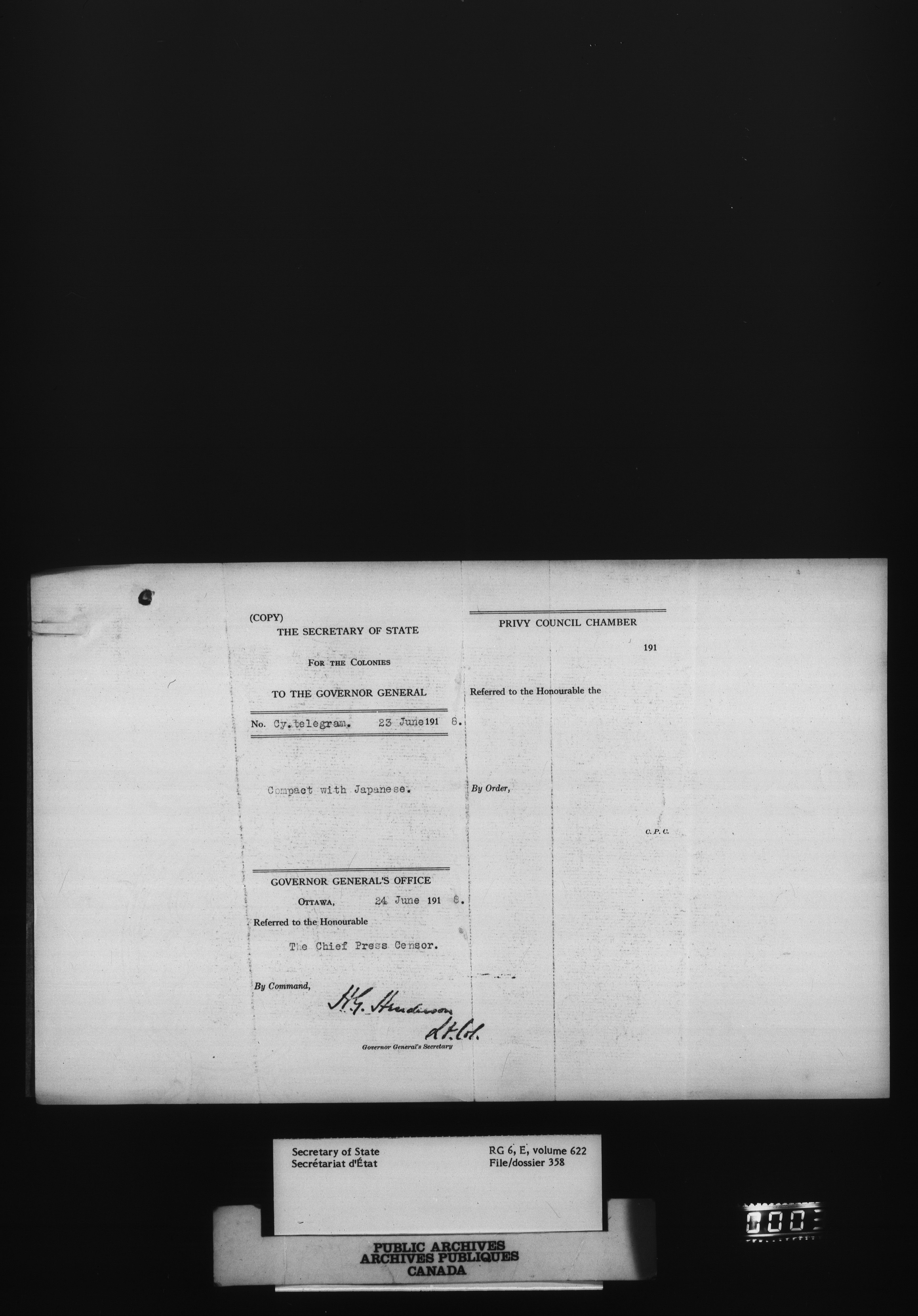 Secretary of State : Chief Press Censor, 1915-1920 - 103