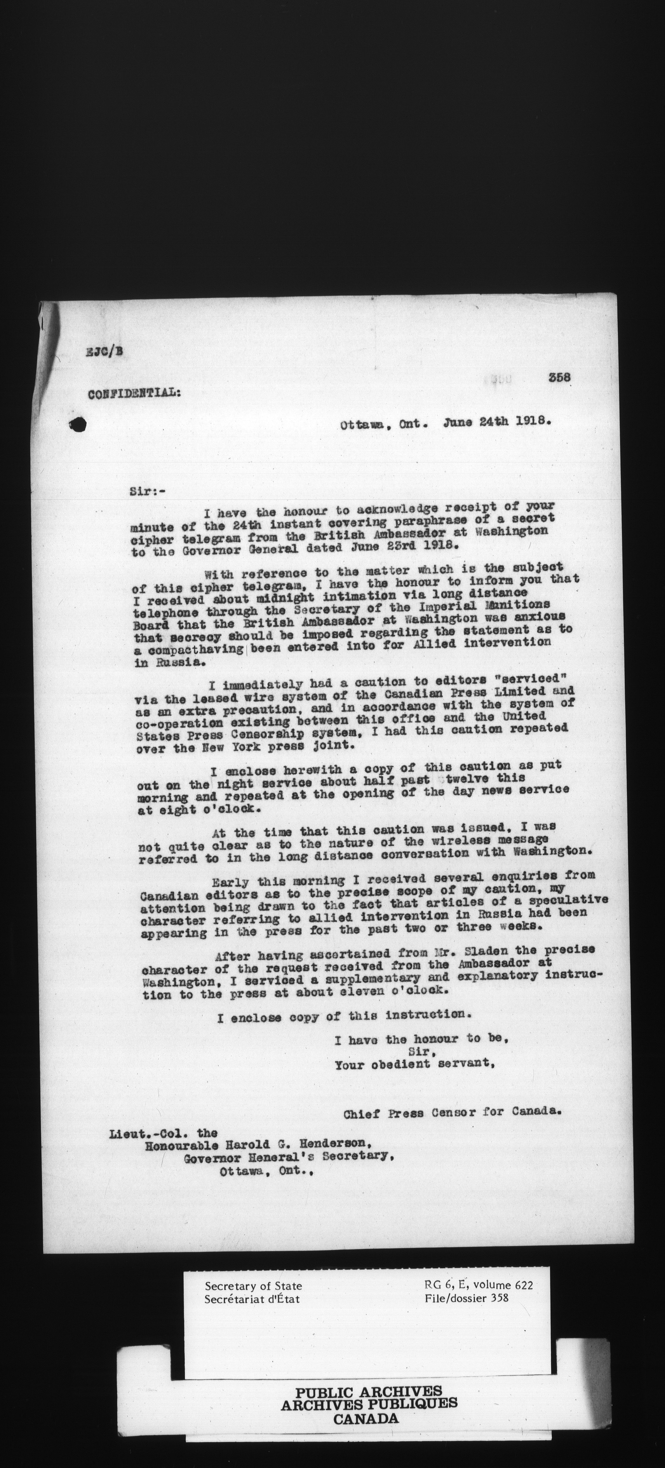 Secretary of State : Chief Press Censor, 1915-1920 - 103