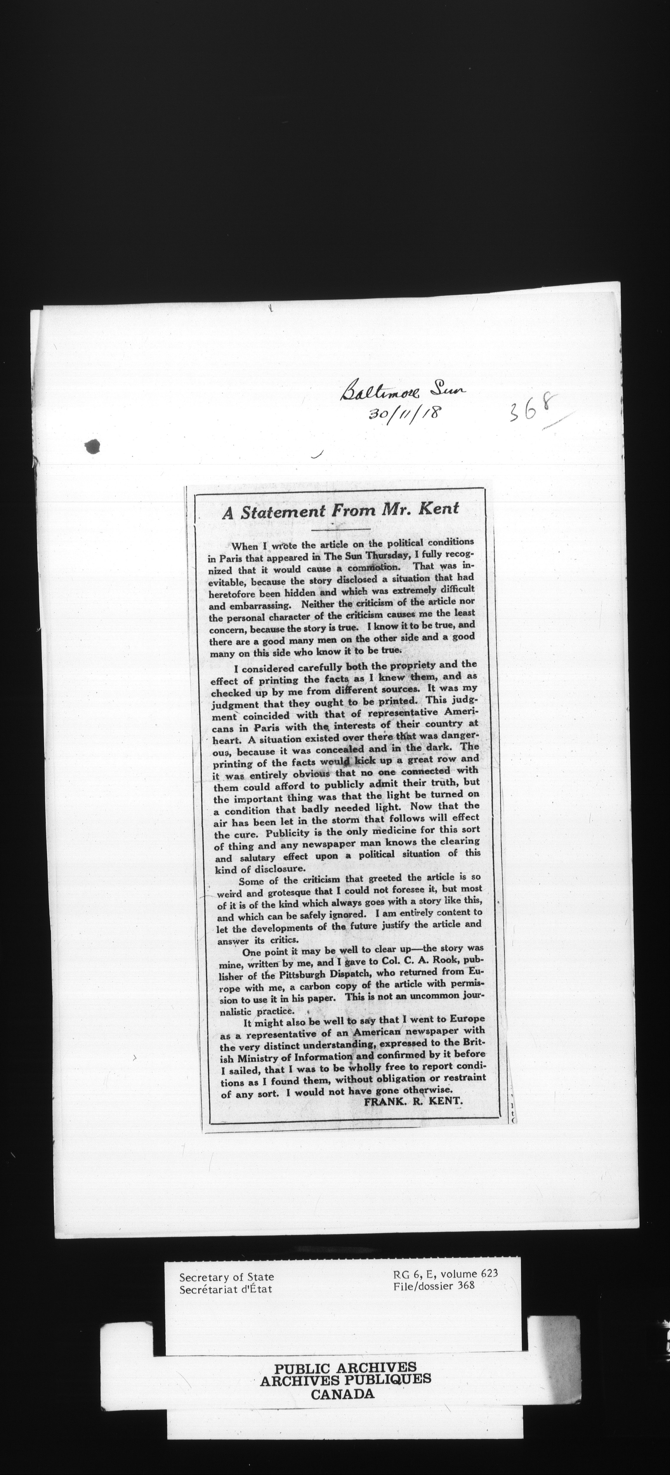 Secretary of State : Chief Press Censor, 1915-1920 - 103
