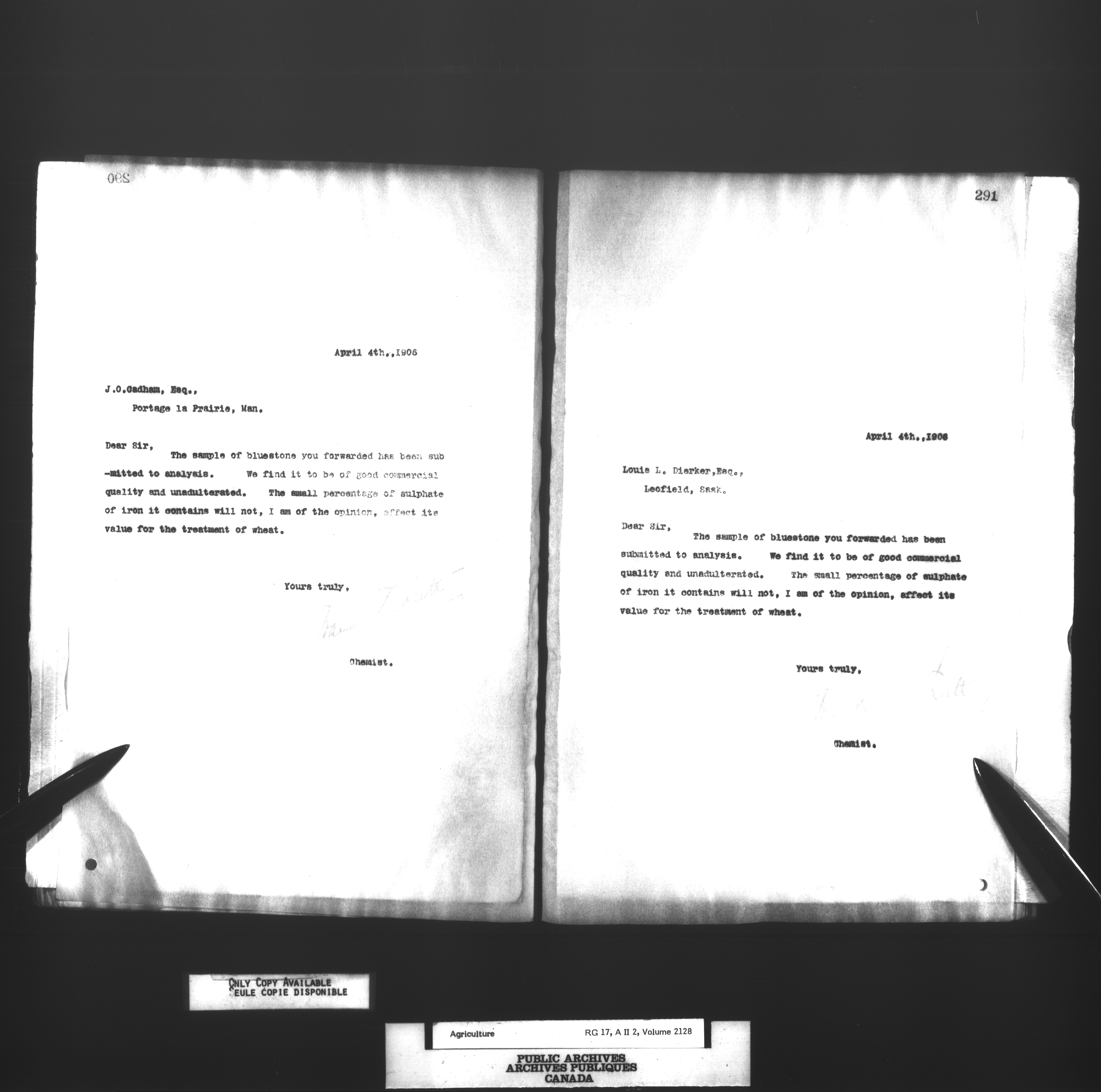 Department of Agriculture : Dominion Chemist, letterbooks - 1030