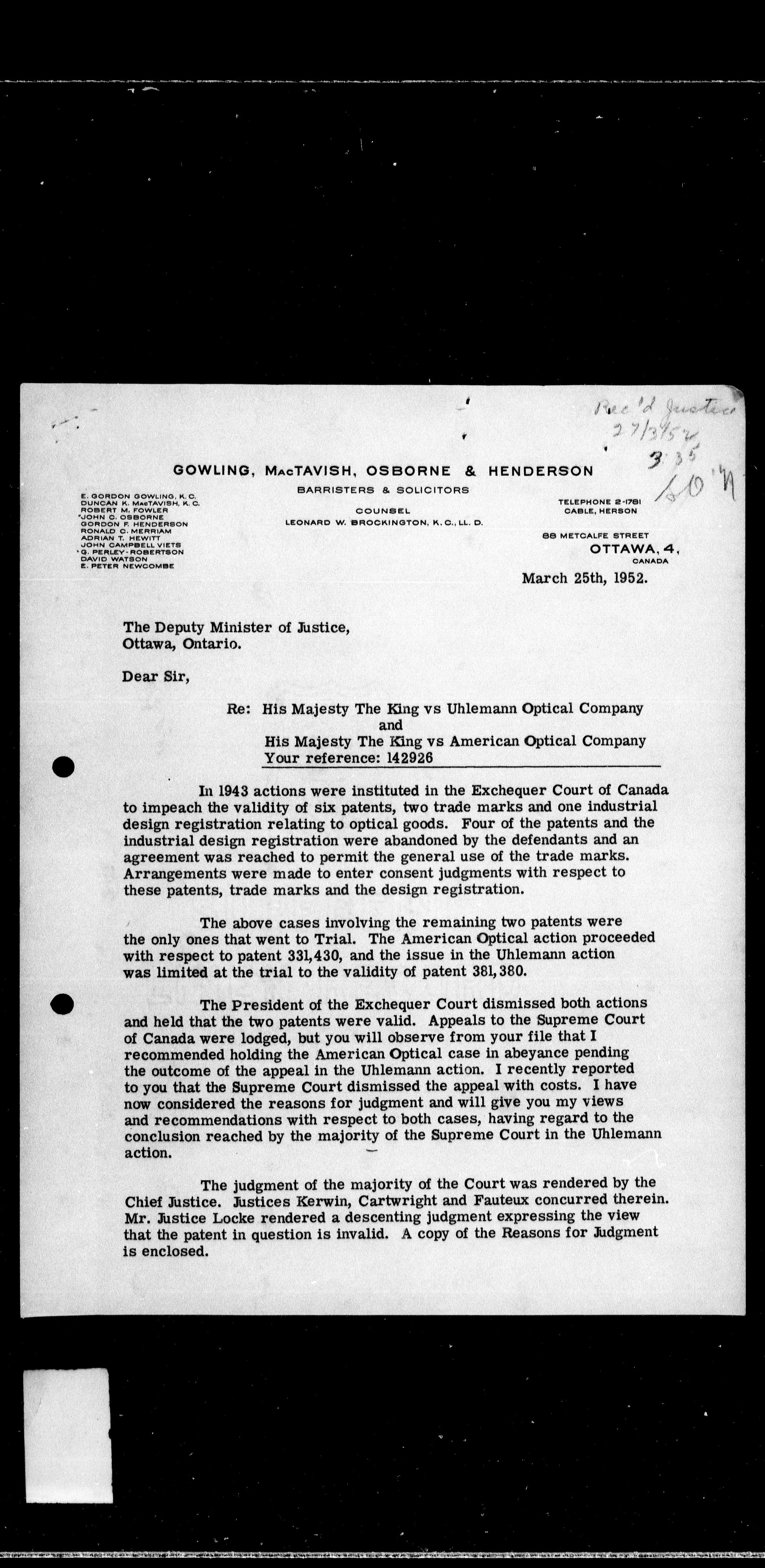 Department of Justice, Central Registry : legal opinions and material of precedential value : T-10302