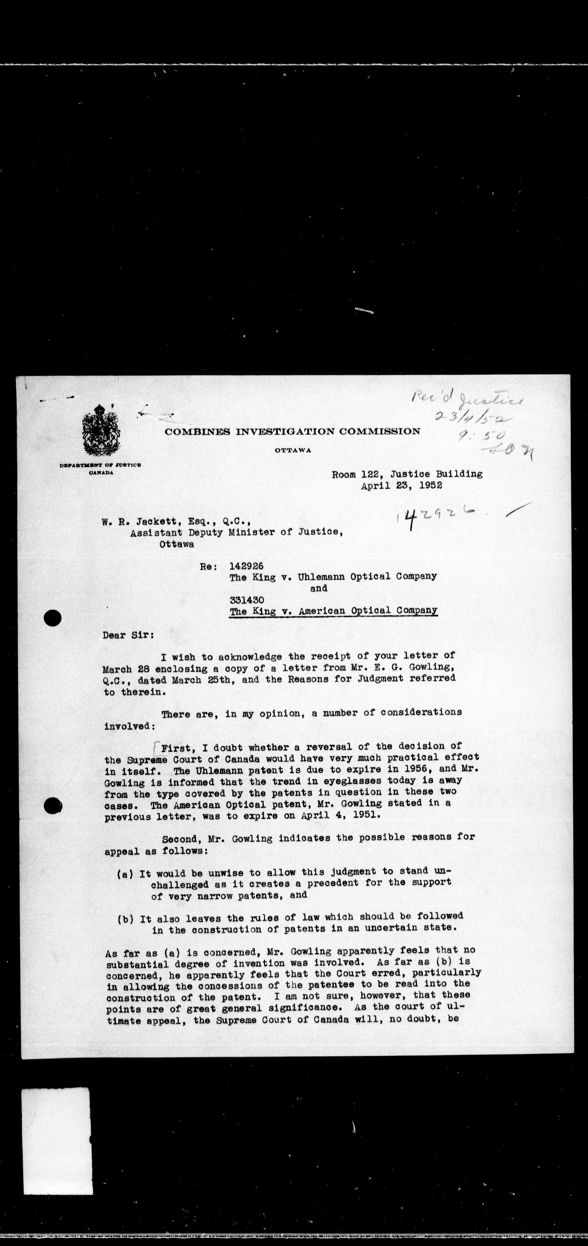 Department of Justice - Legal opinions and material of precedential value (1863-1963) - 10302