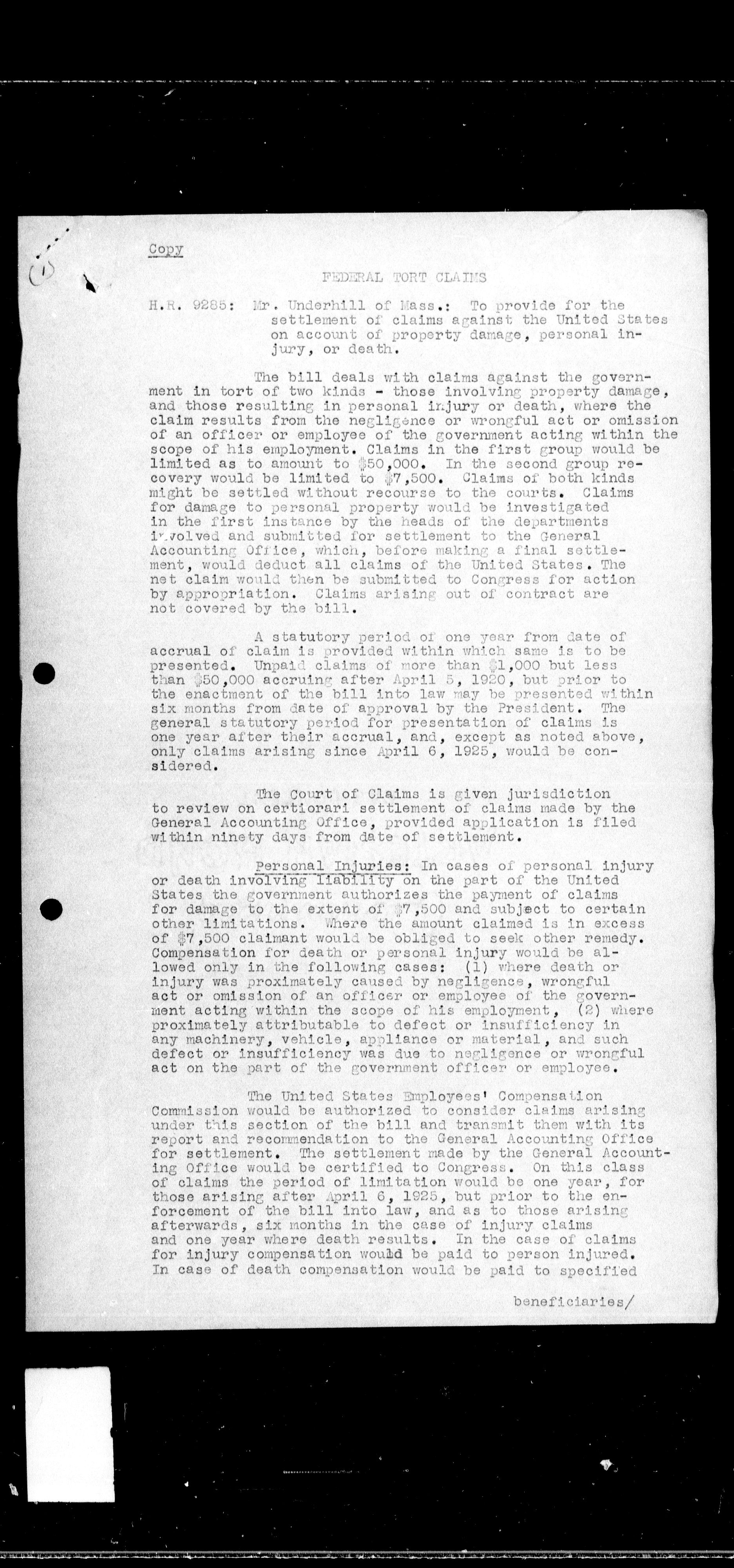 Department of Justice - Legal opinions and material of precedential value (1863-1963) - 10302